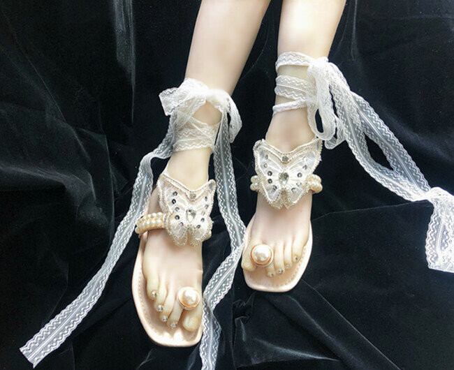 ✞✝✞ ストラップ サンダル♥カワイイ♥Butterflyデザイン レース 靴 シューズ ビーチ ✞✝✞ゴスロリ SM ミリ 甘ロリ クラロリ 和ロリ エレガント 黒ロリ 姫ロリ 華ロリ DD-DD4920749