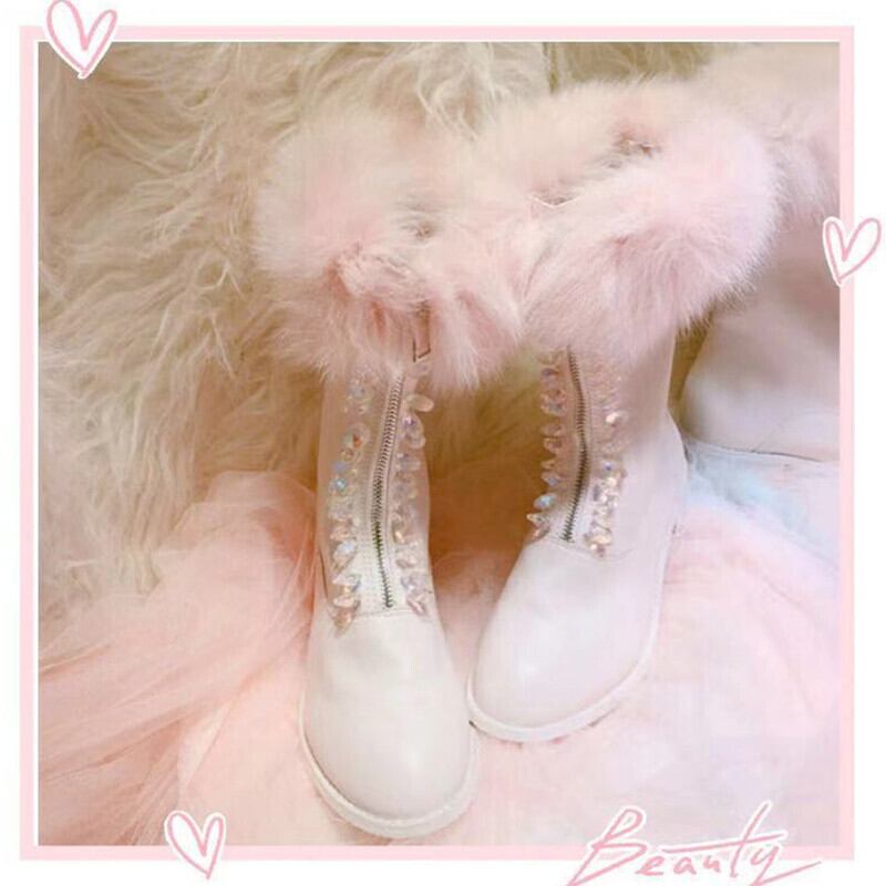 ✞✝✞ ファーブーツジッパーウィンター 靴 シューズ 冬物 ✞✝✞ゴスロリ SM ミリ 甘ロリ クラロリ 和ロリ エレガント 黒ロリ 姫ロリ 華ロリ DD-DD7973213