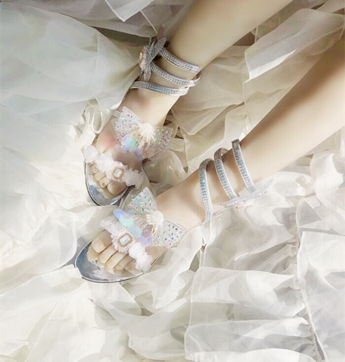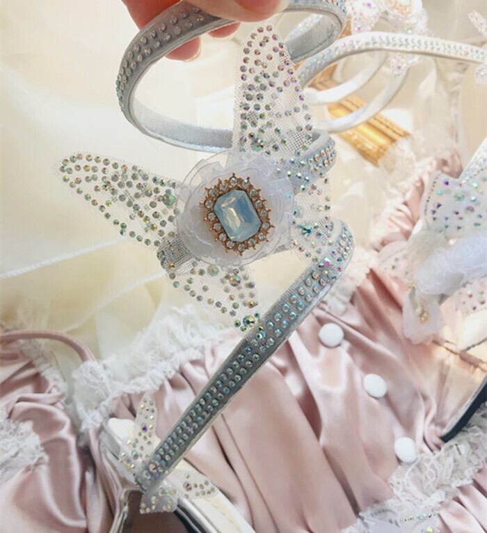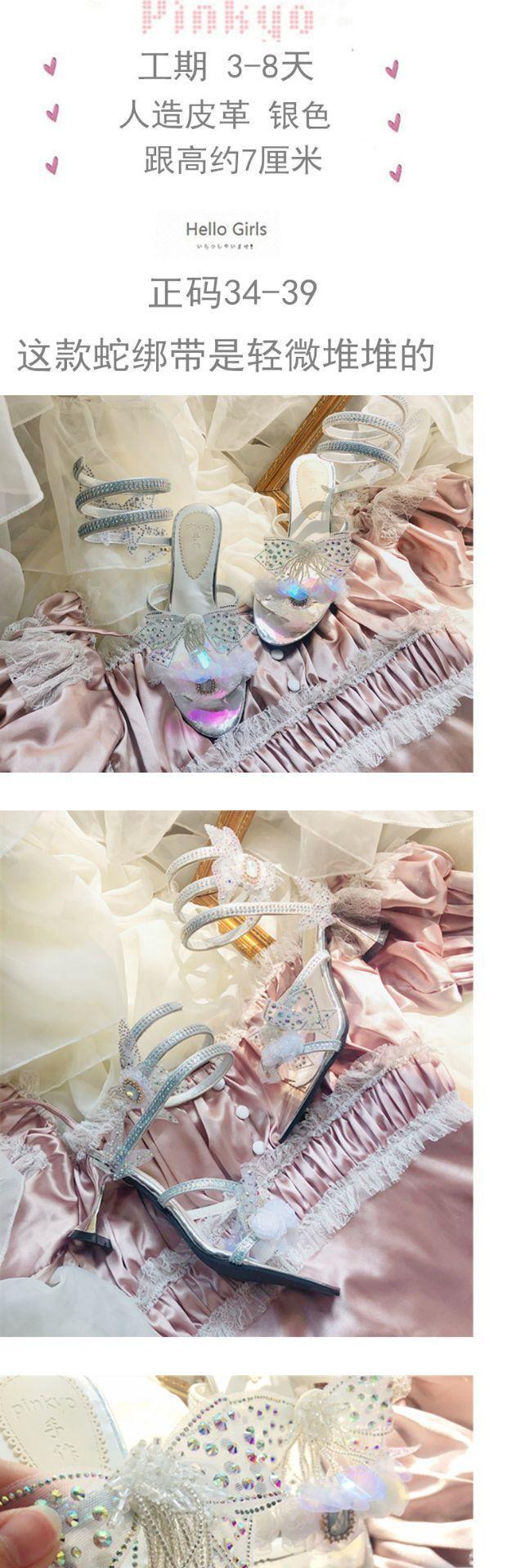 ✞✝✞ ストラップ サンダルヒールリボン ハイヒール 靴 シューズ スウィート ✞✝✞ゴスロリ SM ミリ 甘ロリ クラロリ 和ロリ エレガント 黒ロリ 姫ロリ 華ロリ DD-DD9358824