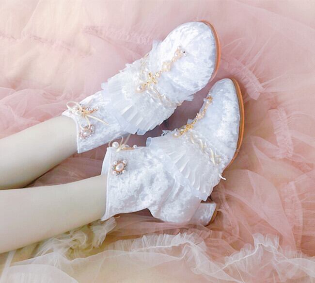 ✞✝✞ レースきれいめ☆スタンダードショートブーツ♥カワイイ♥ 靴 シューズ レトロ スクウェア ✞✝✞ゴスロリ SM ミリ 甘ロリ クラロリ 和ロリ エレガント 黒ロリ 姫ロリ 華ロリ DD-DD8480543