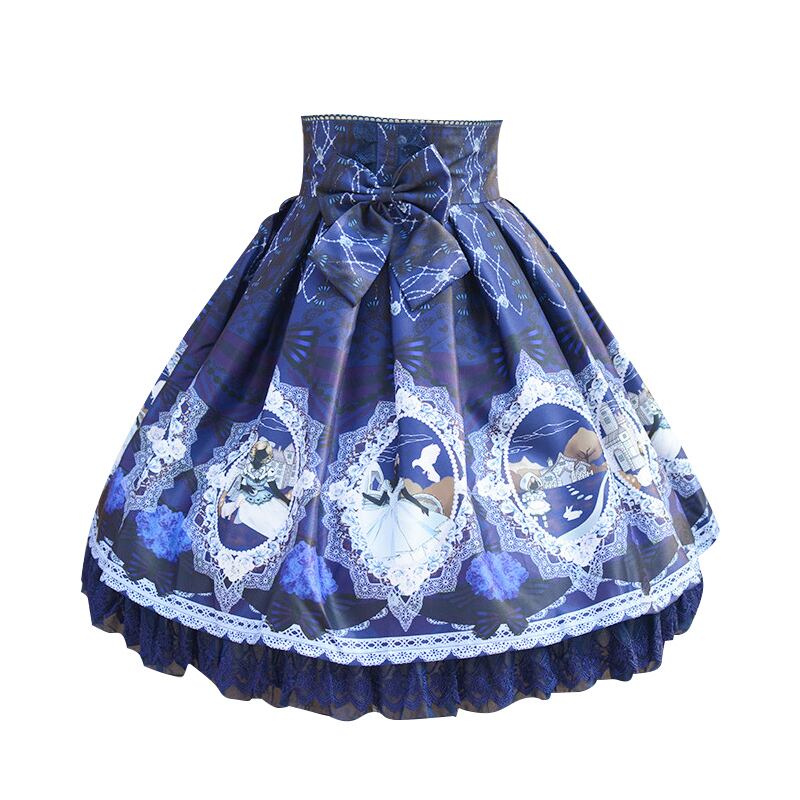 ✞✝✞ プリント柄スカート スタンダード レトロ ✞✝✞ ゴスロリ SM ミリ 甘ロリ クラロリ 和ロリ エレガント 黒ロリ 姫ロリ 華ロリ 春 夏服 秋服 冬服 CC-CC1070995