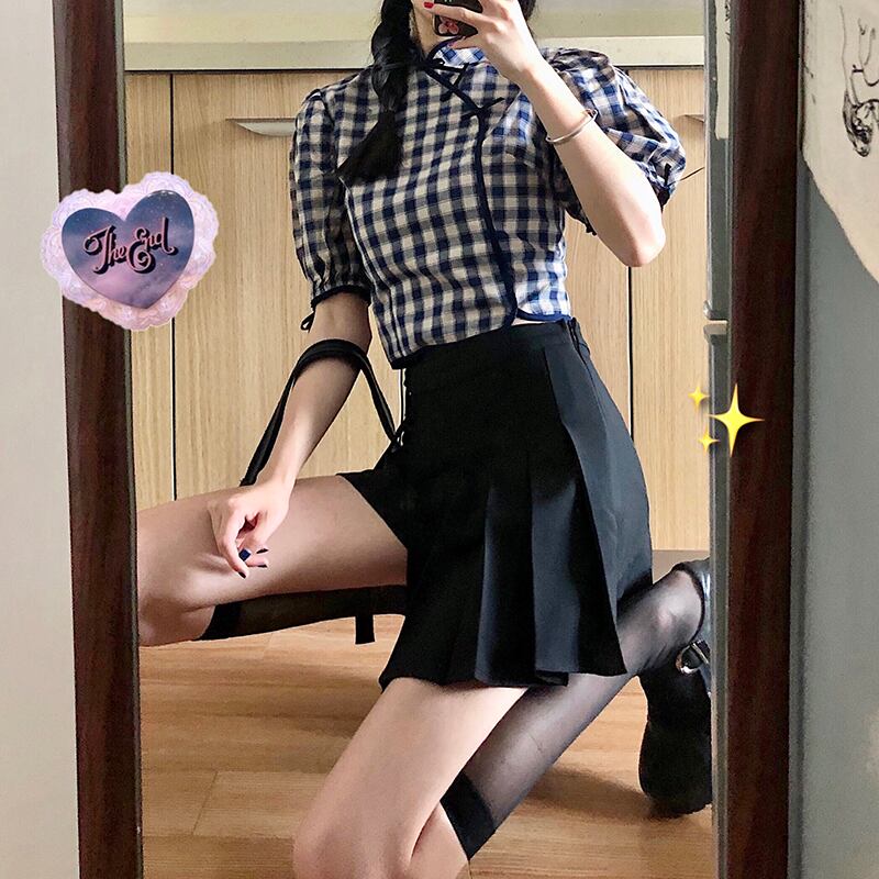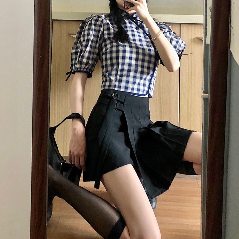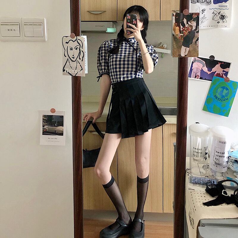 ✞ スタンダードスタンドカラースリーブチェック柄シャツブラウスパンツ スカート レトロ ✞ゴスロリ SM ミリ 甘ロリ クラロリ 和ロリ エレガント 黒ロリ 姫ロリ 華ロリ BB-BB6244562