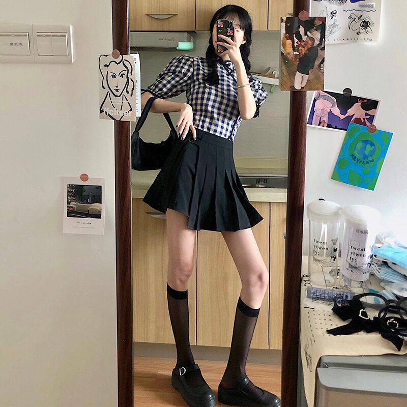 色:チェック柄シングルピース,黒のショートスカートワンピース