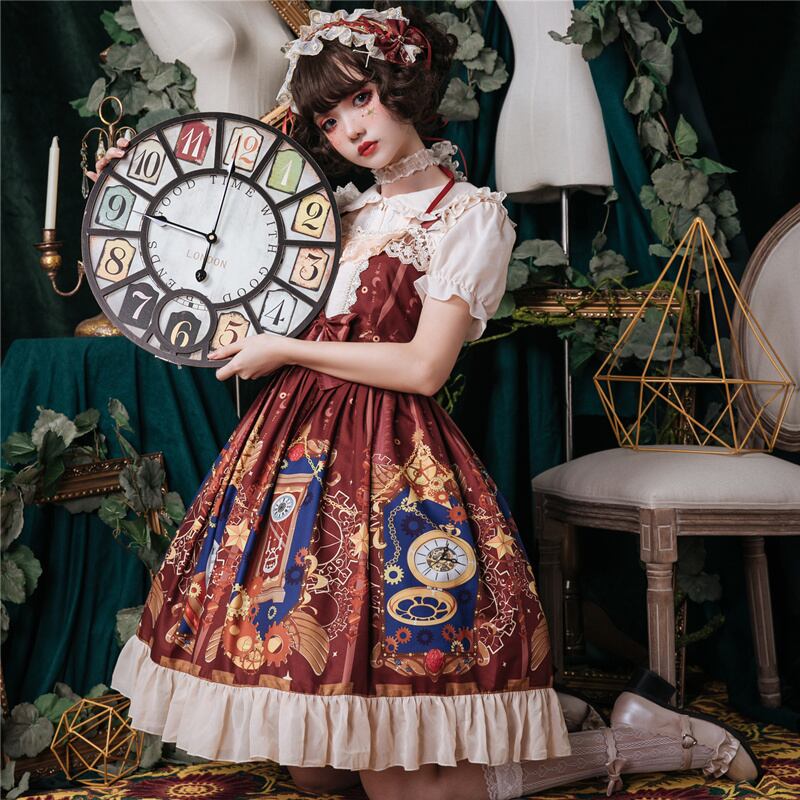 ✞✝✞ ハートドレス 編上げストラップワンピース プリント柄スカート レトロ サマー 夏物 ✞✝✞ ゴスロリ SM ミリ 甘ロリ クラロリ 和ロリ エレガント 黒ロリ 姫ロリ 華ロリ 春 夏服 秋服 冬服 CC-CC3526192