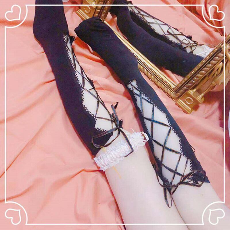 ✞✝✞ クロスバンドストッキング ソックス 大人女子☆きれいめ☆ タイツ ✞✝✞ゴスロリ SM ミリ 甘ロリ クラロリ 和ロリ エレガント 黒ロリ 姫ロリ 華ロリ DD-DD4338055