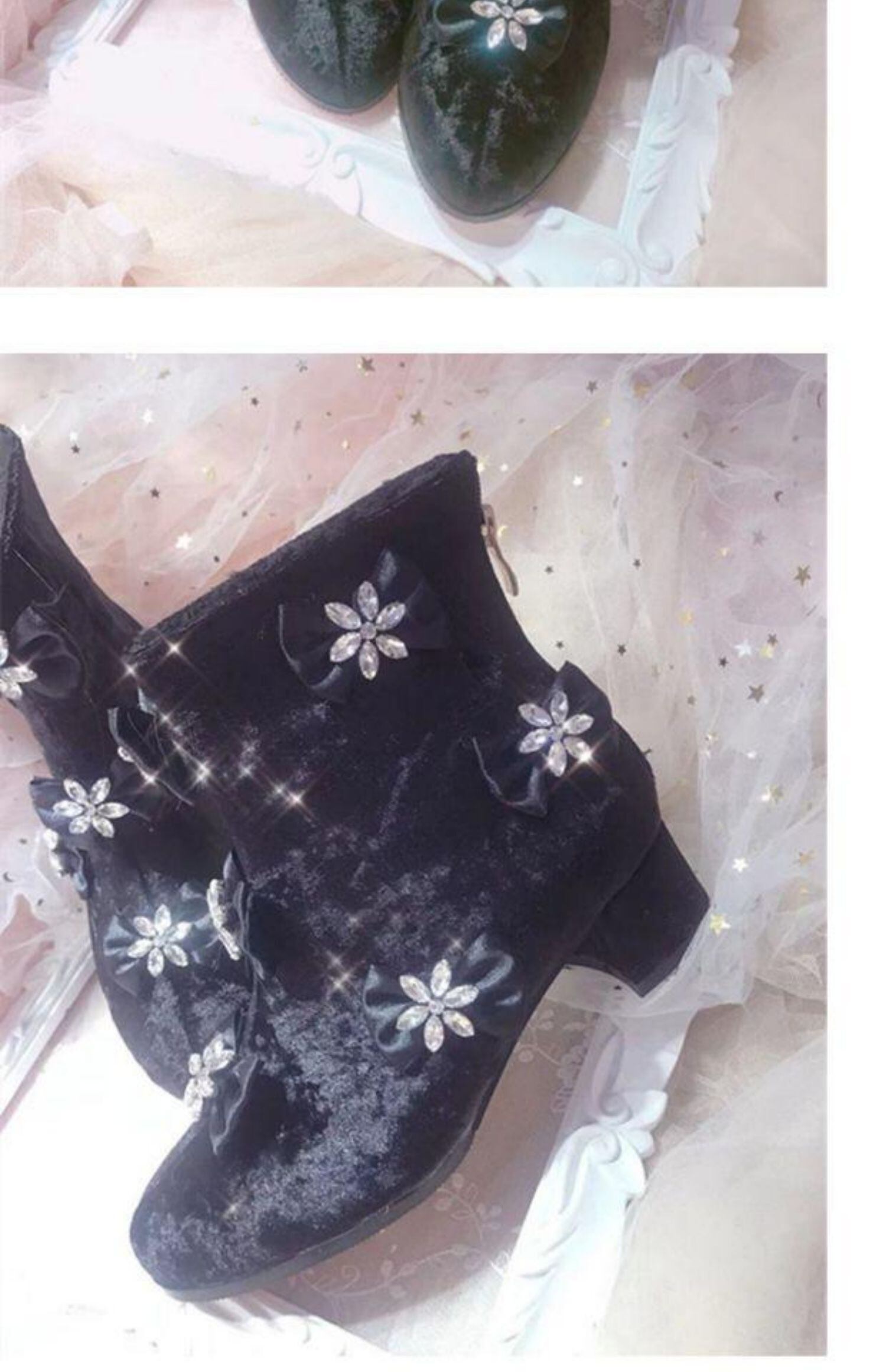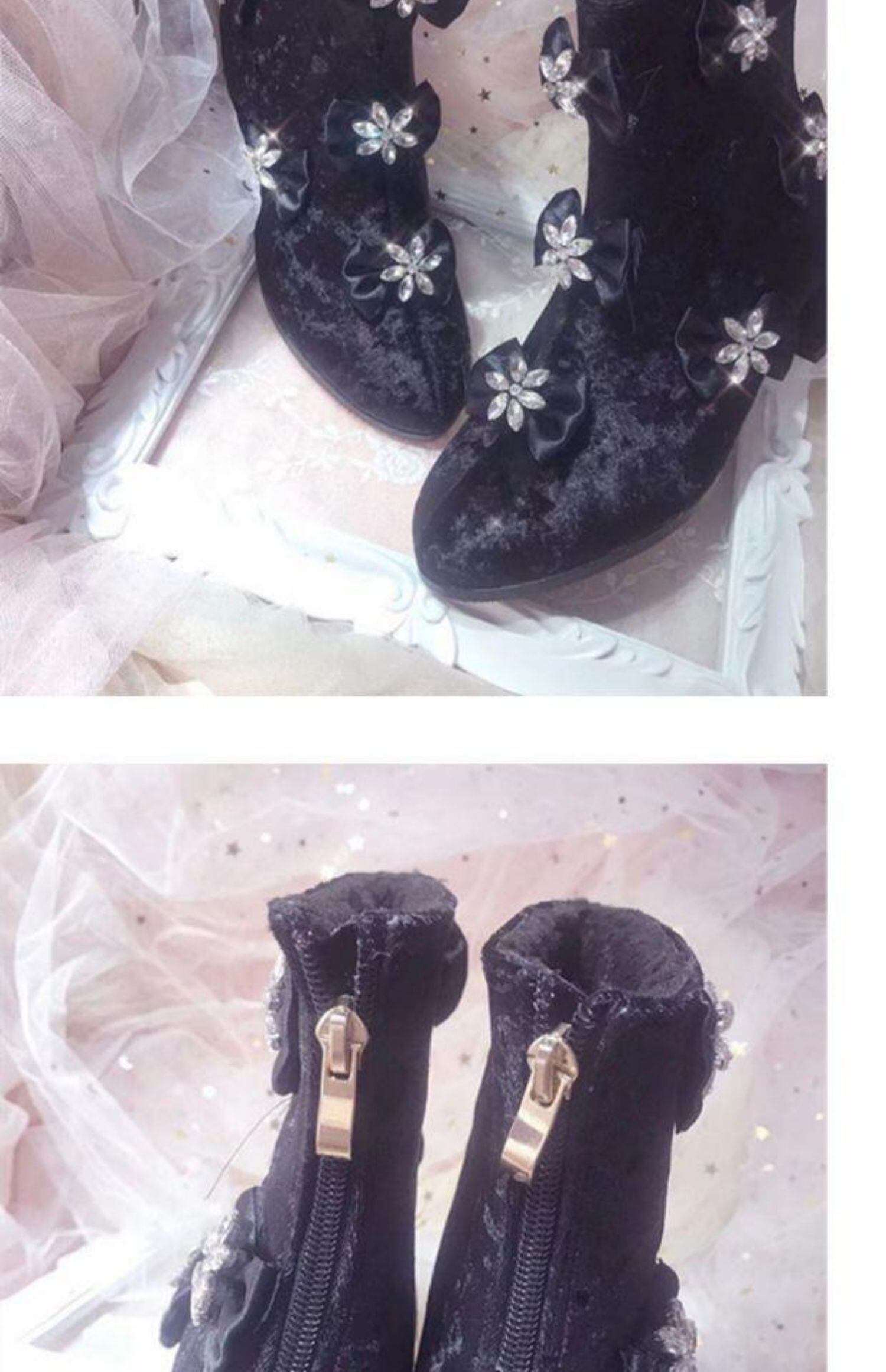 ✞✝✞ ベルベットショートブーツリボン 靴 シューズ コットン スウィート ✞✝✞ゴスロリ SM ミリ 甘ロリ クラロリ 和ロリ エレガント 黒ロリ 姫ロリ 華ロリ DD-DD0285864