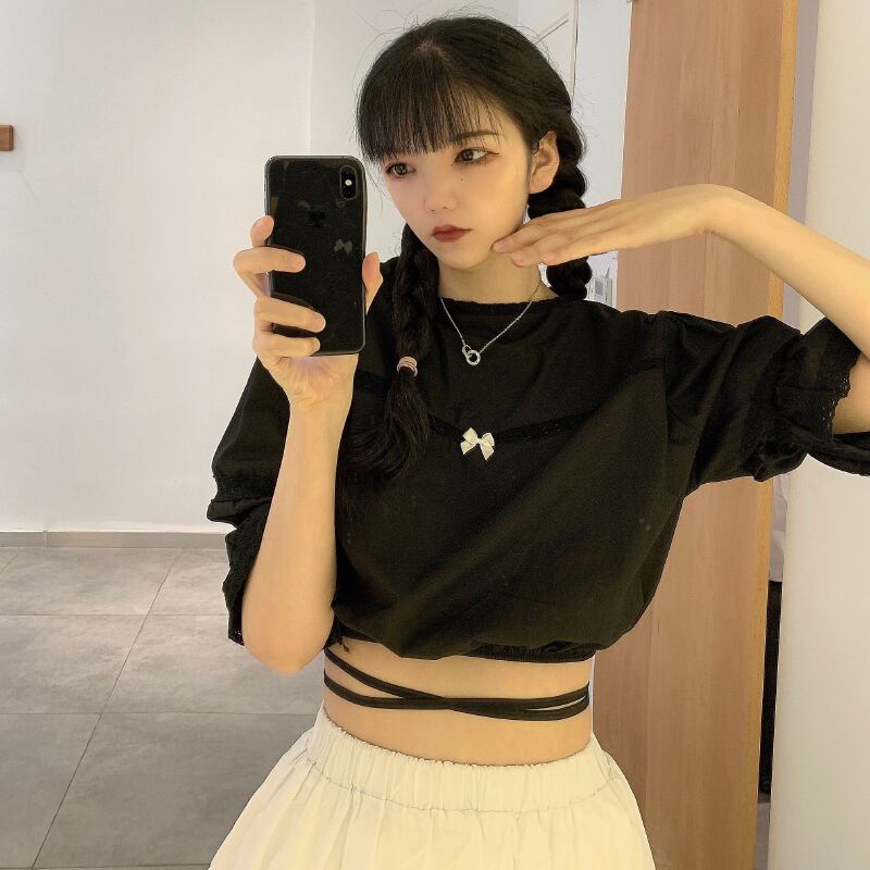 ✞ ダークリボンレースシャツブラウスAラインスカート ステッチ ✞ゴスロリ SM ミリ 甘ロリ クラロリ 和ロリ エレガント 黒ロリ 姫ロリ 華ロリ BB-BB0772085