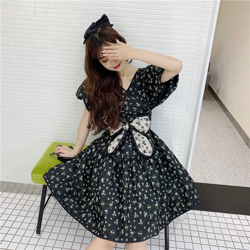 ✞ Vネック花柄スリーブリボンレース スウィート ✞ゴスロリ SM ミリ 甘ロリ クラロリ 和ロリ エレガント 黒ロリ 姫ロリ 華ロリ BB-BB7666594