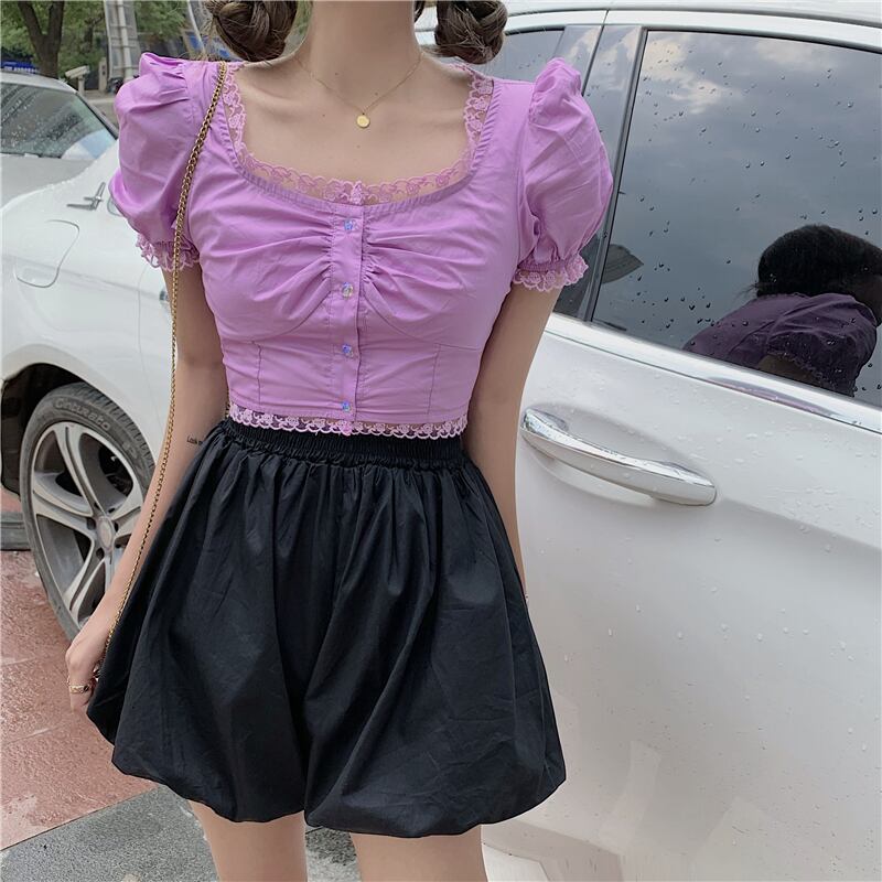 ✞ ショートレーススリーブトップス スリムスカート 大人女子☆ スウィート パープル スクウェア ✞ゴスロリ SM ミリ 甘ロリ クラロリ 和ロリ エレガント 黒ロリ 姫ロリ 華ロリ BB-BB2757296
