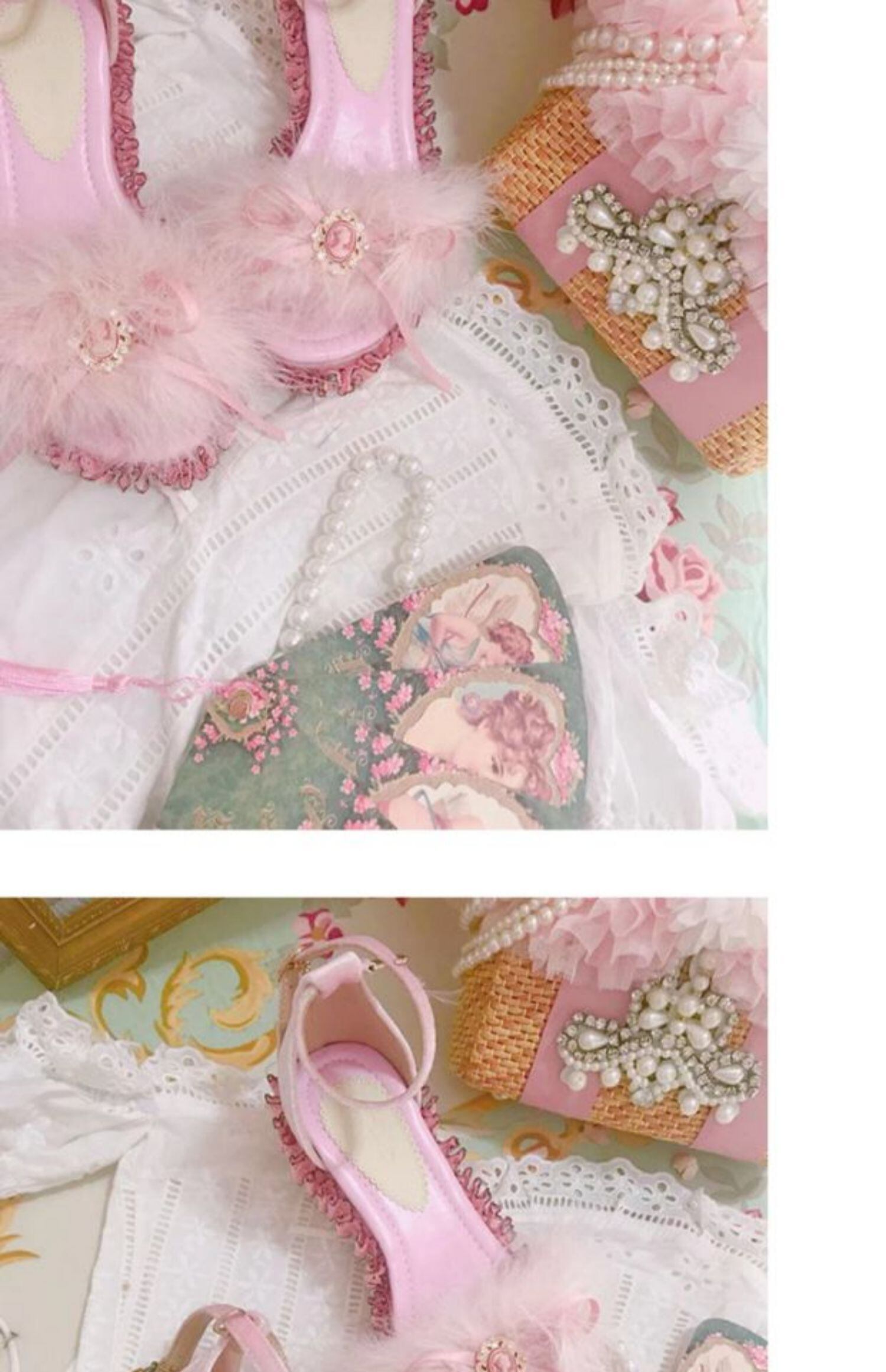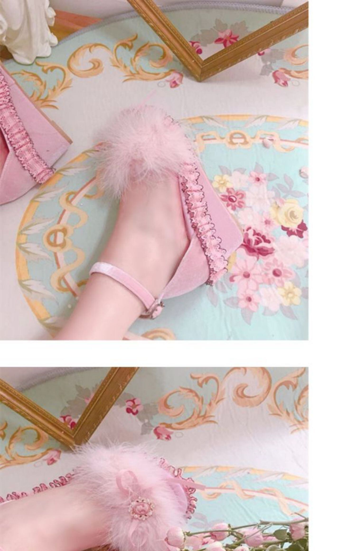 ✞✝✞ ベルベットモヘアピンクサンダル 靴 シューズ ピンク スウィート ✞✝✞ゴスロリ SM ミリ 甘ロリ クラロリ 和ロリ エレガント 黒ロリ 姫ロリ 華ロリ DD-DD0248996