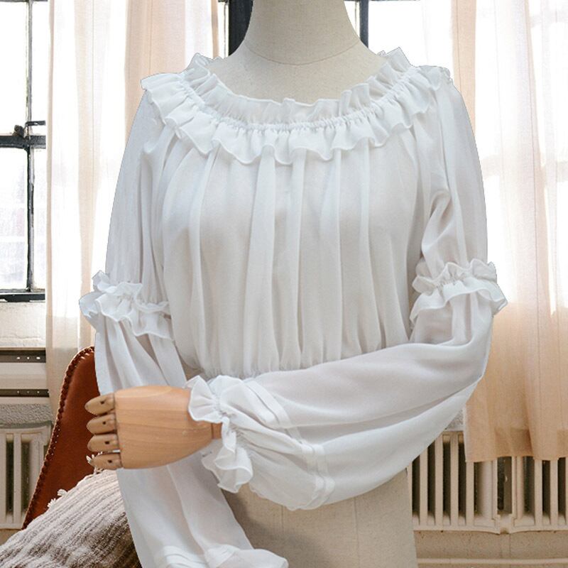 ✞✝✞ シャツブラウストップス シフォン ロング ✞✝✞ ゴスロリ SM ミリ 甘ロリ クラロリ 和ロリ エレガント 黒ロリ 姫ロリ 華ロリ 春 夏服 秋服 冬服 CC-CC4799807