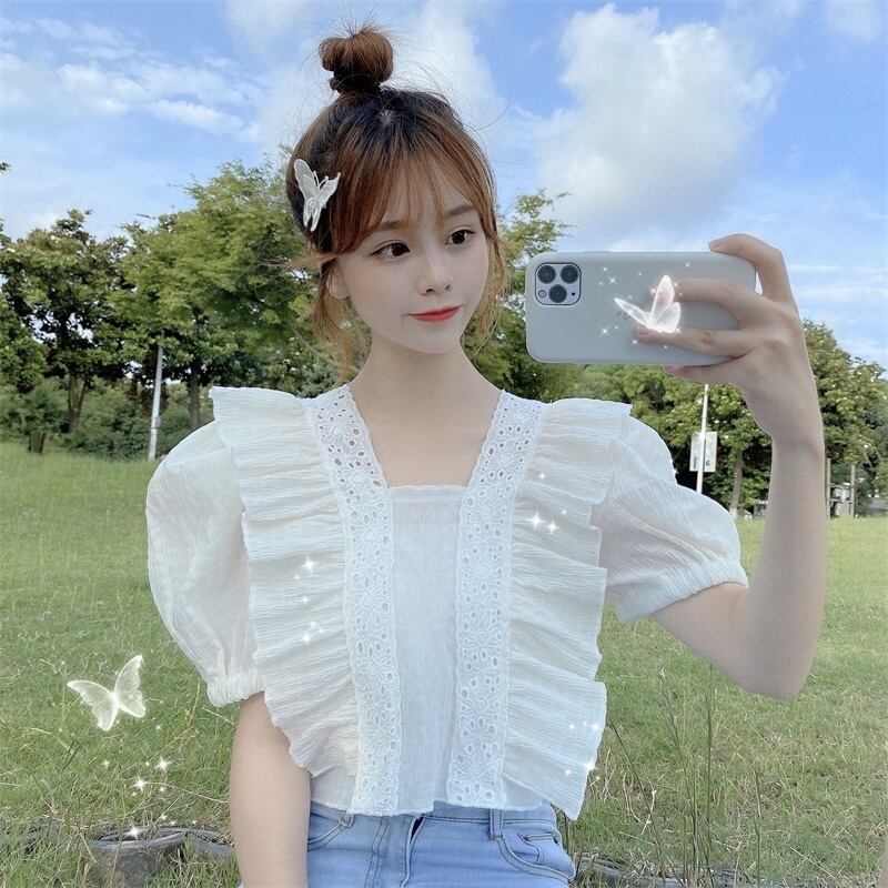 ✞ シャツブラウスラッフルレース半袖スリーブトップス ショート スウィート ステッチ ✞ゴスロリ SM ミリ 甘ロリ クラロリ 和ロリ エレガント 黒ロリ 姫ロリ 華ロリ BB-BB6789852