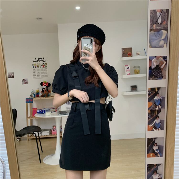 ✞ きれいめ☆ダークブラックショートトップス スカート ✞ゴスロリ SM ミリ 甘ロリ クラロリ 和ロリ エレガント 黒ロリ 姫ロリ 華ロリ BB-BB0330943