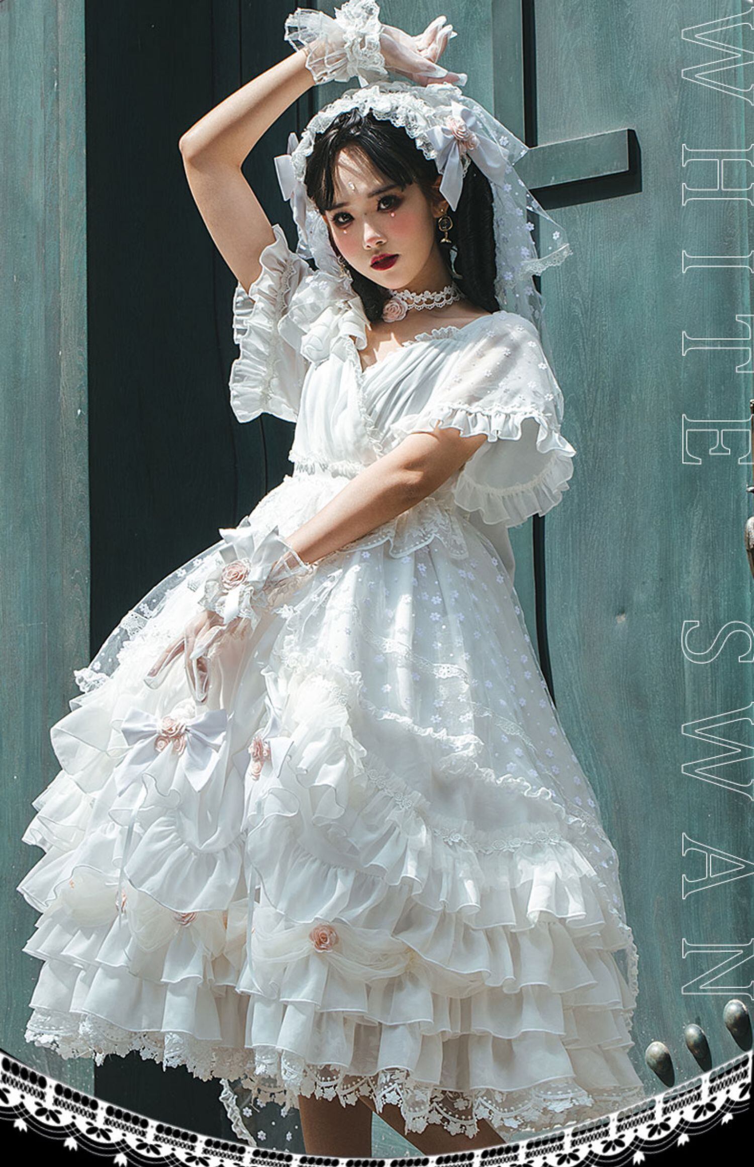 ✞✝✞ エレガント黒ブラックスワンワンピースOP ホワイトスワン ✞✝✞ ゴスロリ SM ミリ 甘ロリ クラロリ 和ロリ エレガント 黒ロリ 姫ロリ 華ロリ 春 夏服 秋服 冬服 CC-CC4155231
