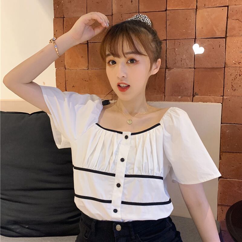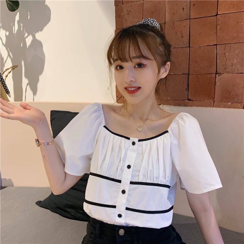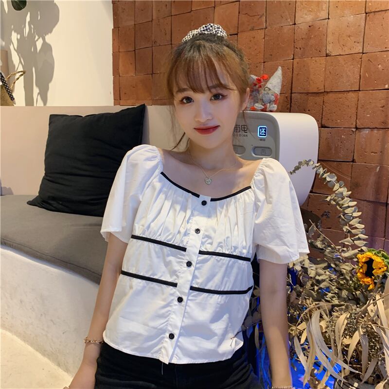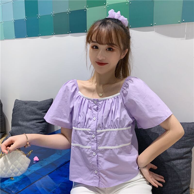 ✞ シャツブラウスプリーツショートトップス スクウェア ✞ゴスロリ SM ミリ 甘ロリ クラロリ 和ロリ エレガント 黒ロリ 姫ロリ 華ロリ BB-BB6893887
