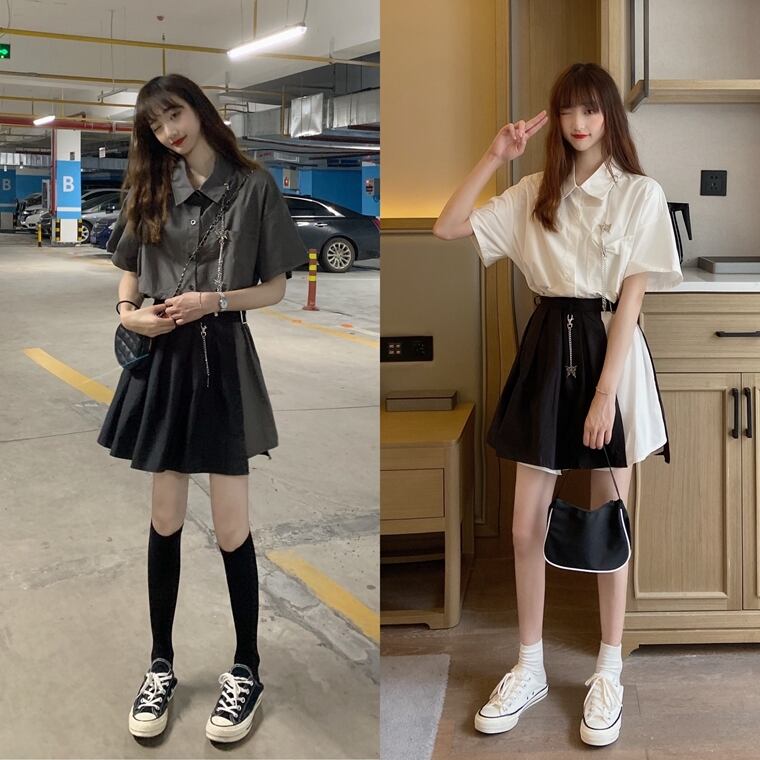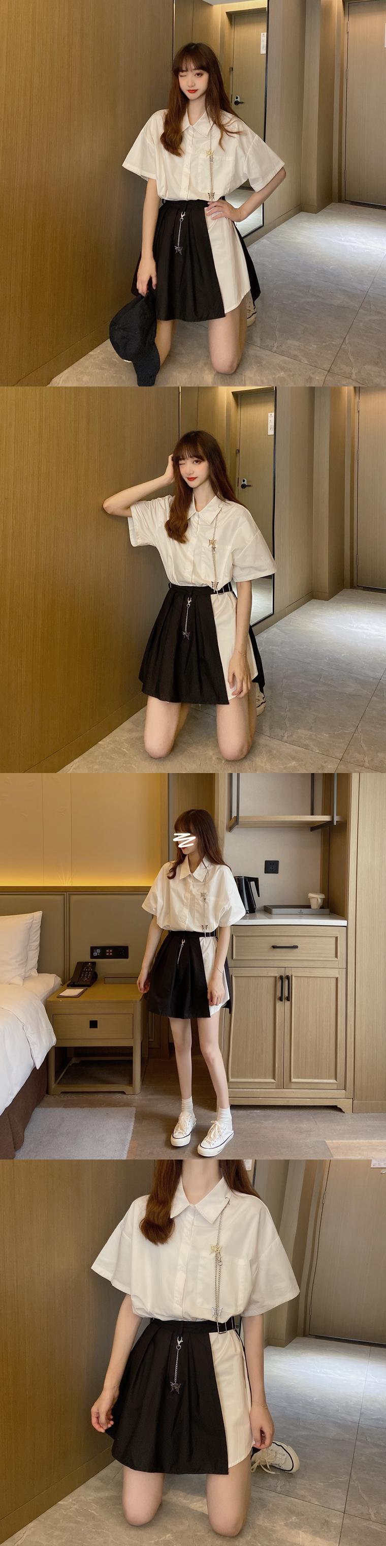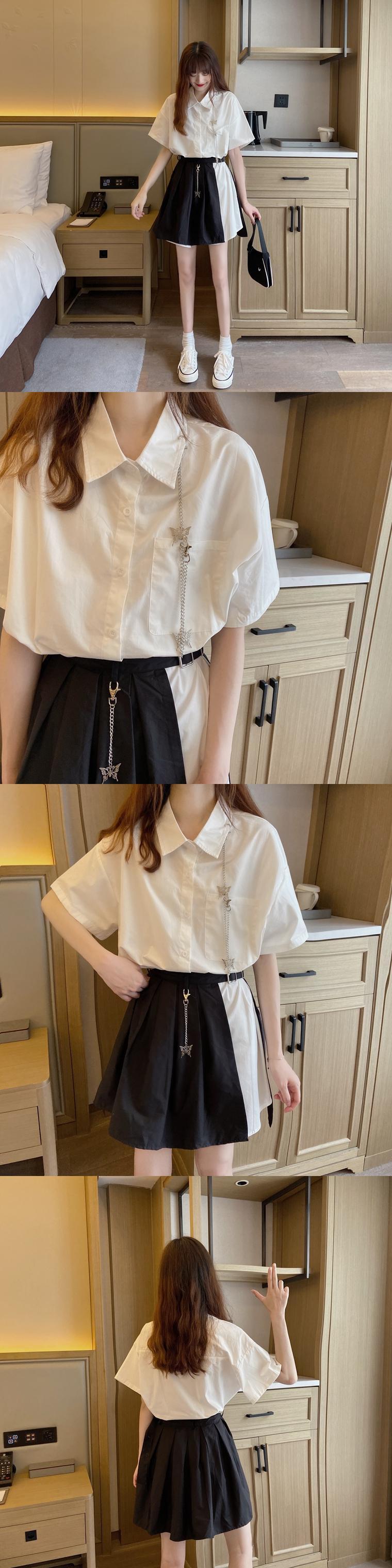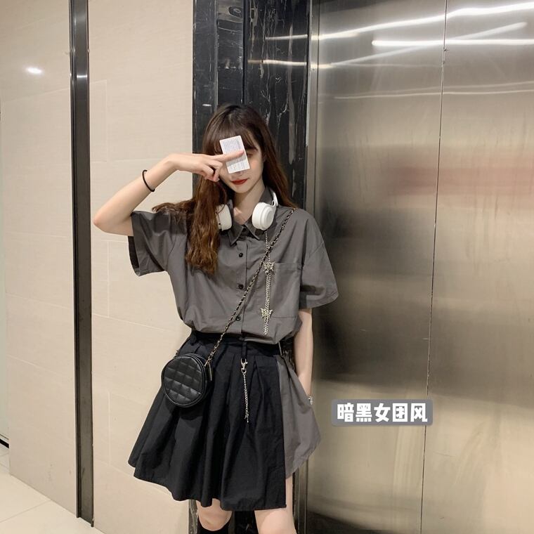 ✞ ポケットシャツブラウス♥カワイイ♥プリーツスカート ダーク ✞ゴスロリ SM ミリ 甘ロリ クラロリ 和ロリ エレガント 黒ロリ 姫ロリ 華ロリ BB-BB9667409