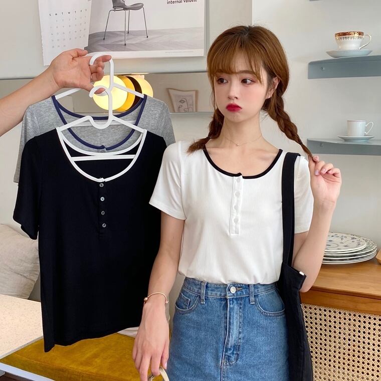 ✞ サマーきれいめ☆スリムラウンドネック半袖スリーブニットシャツブラウス大人女子☆ ショート 夏物 ✞ゴスロリ SM ミリ 甘ロリ クラロリ 和ロリ エレガント 黒ロリ 姫ロリ 華ロリ BB-BB9683829