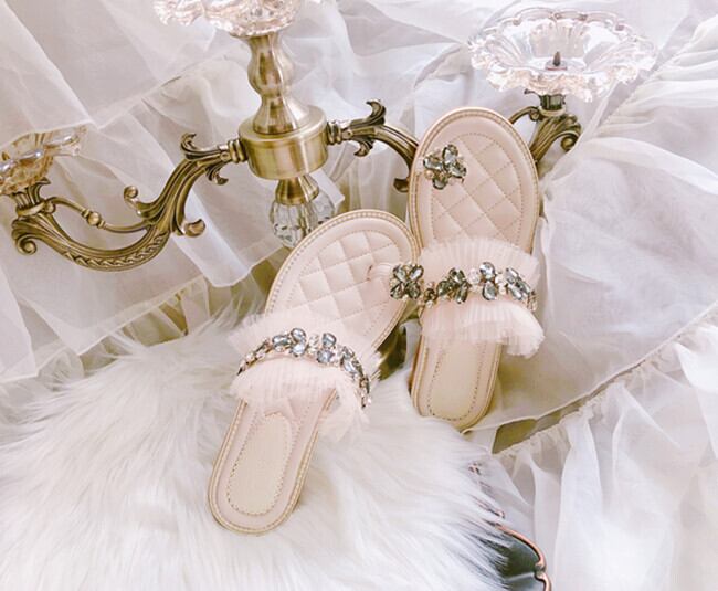 ✞✝✞ ガーリーなボヘミアンサンダルミュール ☆スタンダードラインストーンメッシュ 靴 シューズ レトロ ✞✝✞ゴスロリ SM ミリ 甘ロリ クラロリ 和ロリ エレガント 黒ロリ 姫ロリ 華ロリ DD-DD2757802