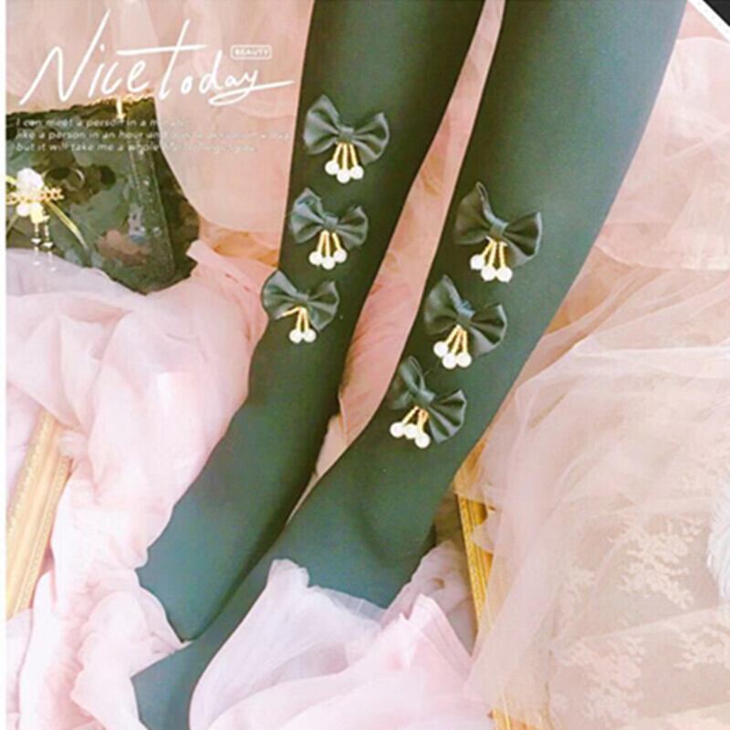 ✞✝✞ リボンベルベットソックス ウィンター エラスティック 伸縮 スウィート 冬物 タイツ ストッキング ✞✝✞ゴスロリ SM ミリ 甘ロリ クラロリ 和ロリ エレガント 黒ロリ 姫ロリ 華ロリ DD-DD5008823