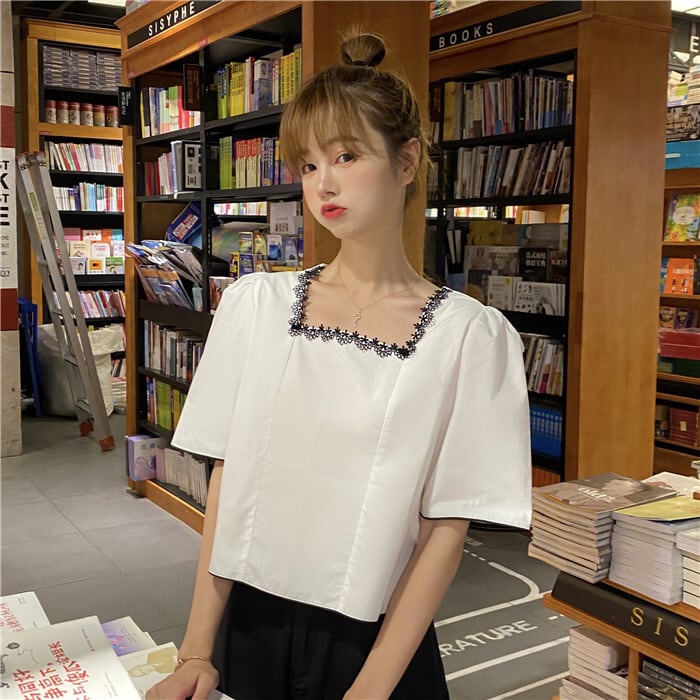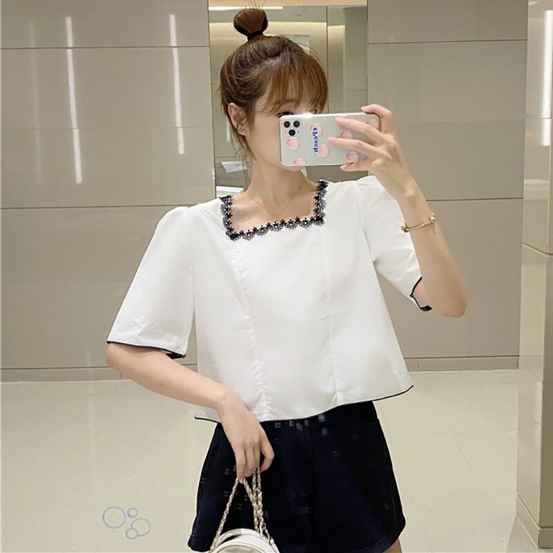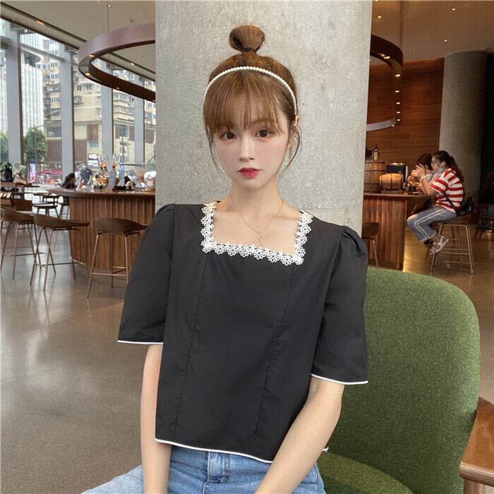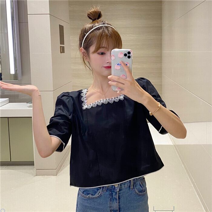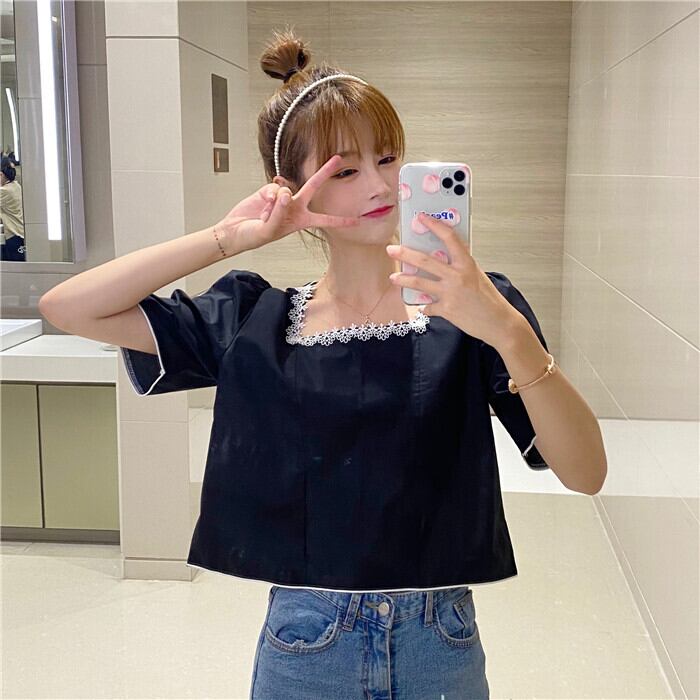✞ レース刺繍プリーツショートシャツブラウス スウィート スクウェア ✞ゴスロリ SM ミリ 甘ロリ クラロリ 和ロリ エレガント 黒ロリ 姫ロリ 華ロリ BB-BB5393206