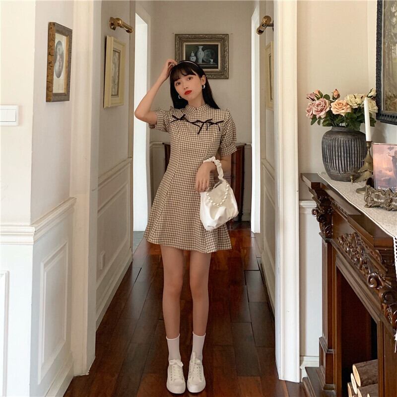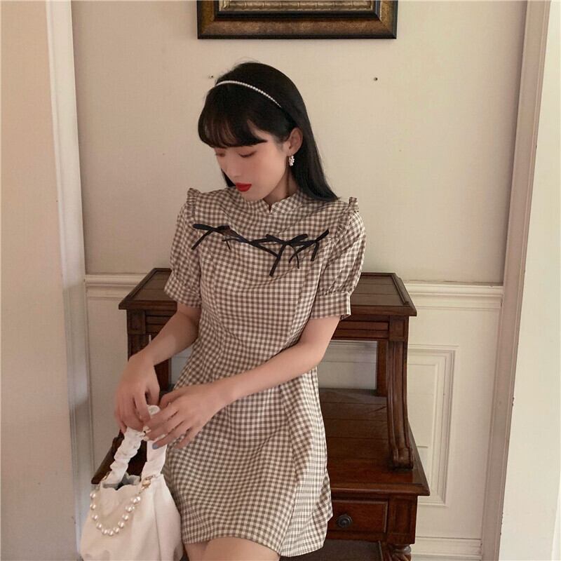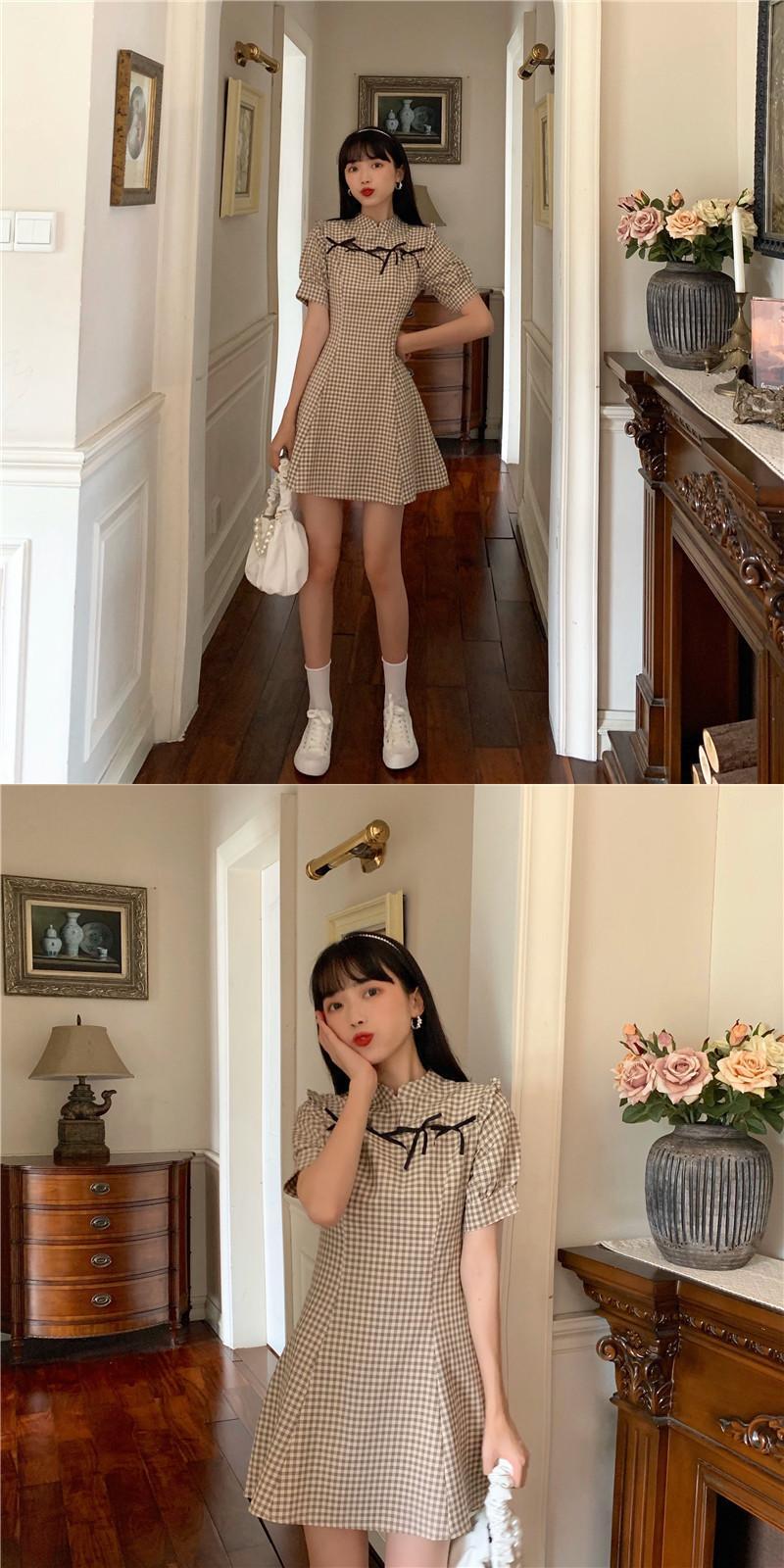 ✞ スタンダードスタンドカラーリボン半袖スリーブチェック柄 ショート レトロ ✞ゴスロリ SM ミリ 甘ロリ クラロリ 和ロリ エレガント 黒ロリ 姫ロリ 華ロリ BB-BB5872180