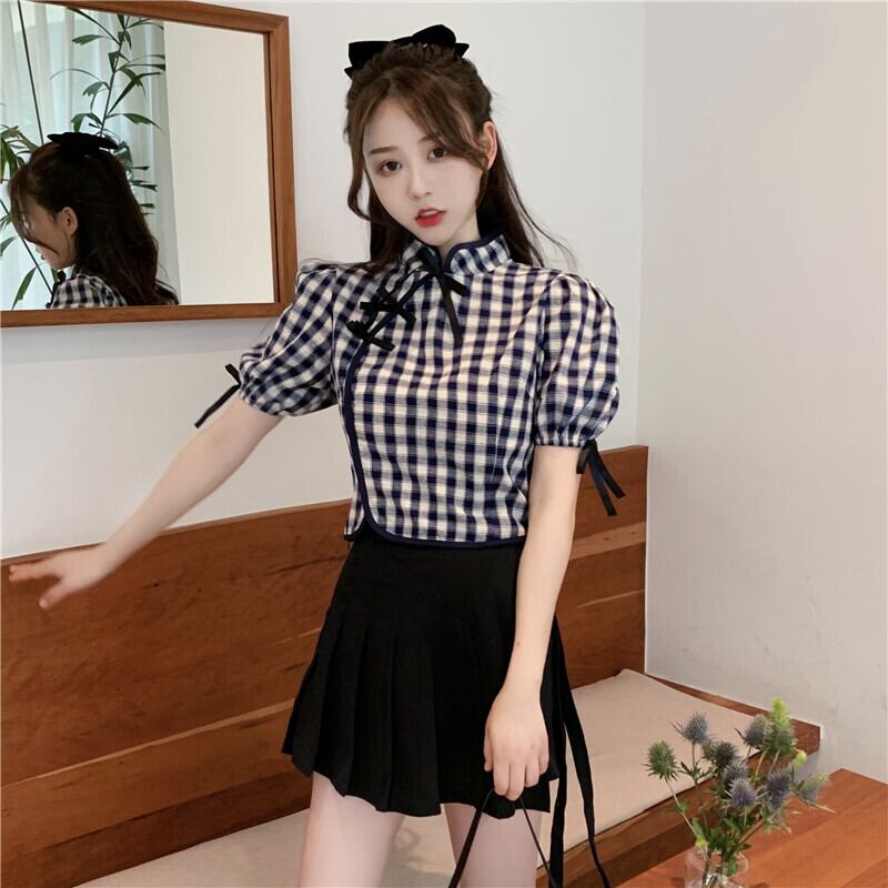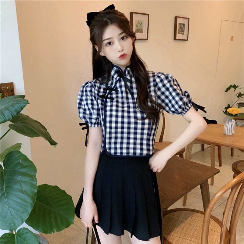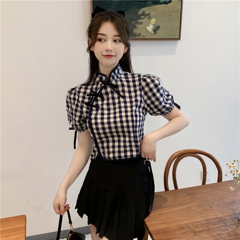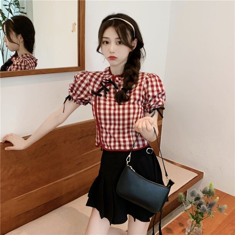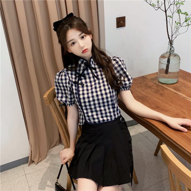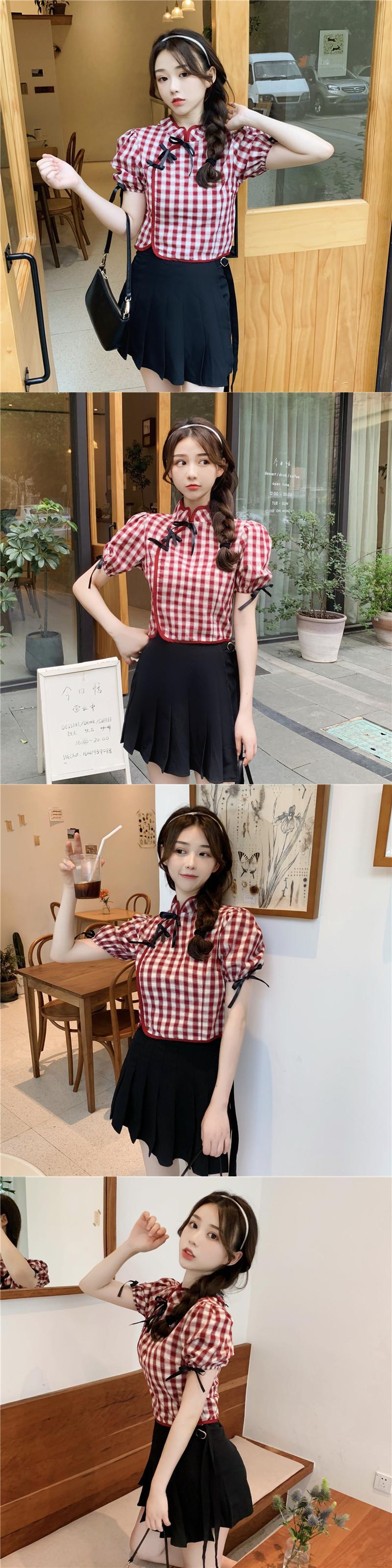 ✞ きれいめ☆スタンダードバックルスリーブチェック柄シャツブラウスブラックスカート ショート レトロ ✞ゴスロリ SM ミリ 甘ロリ クラロリ 和ロリ エレガント 黒ロリ 姫ロリ 華ロリ BB-BB1868741