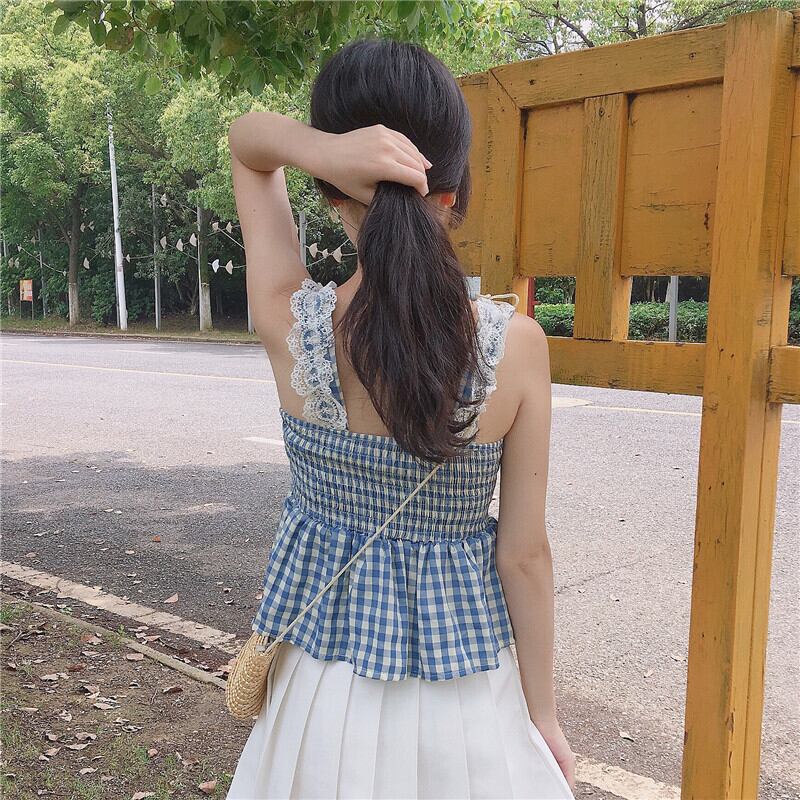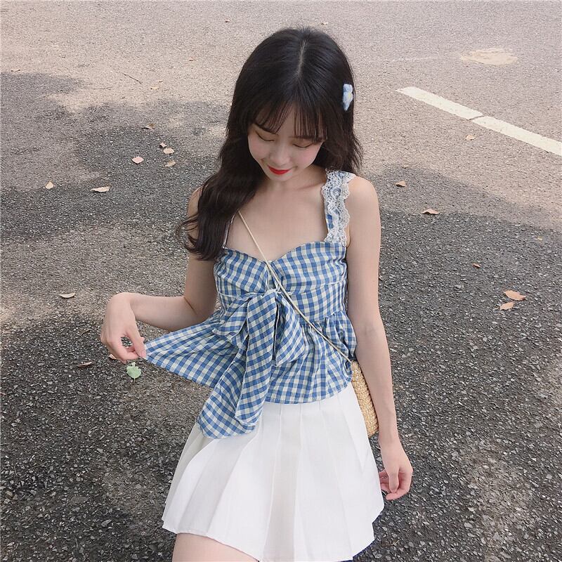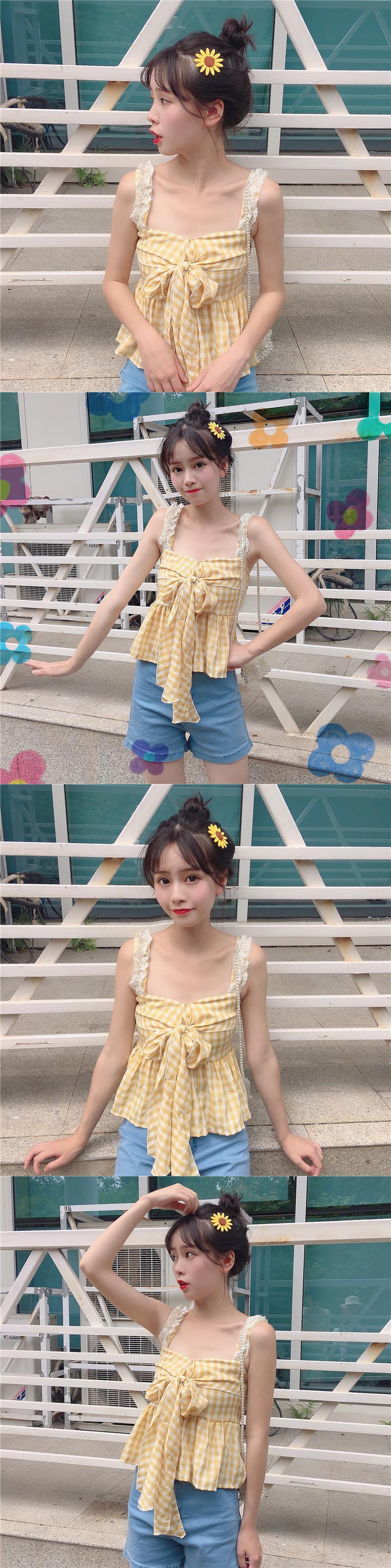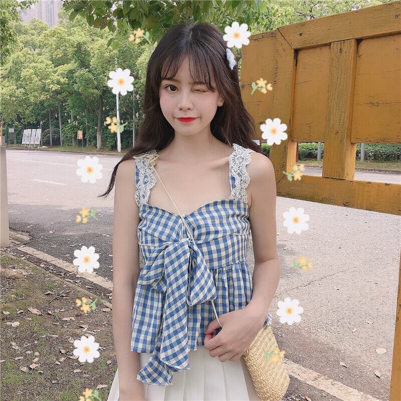 ✞ トップス レースリボンチェック柄ショートキャミソール ステッチ ✞ゴスロリ SM ミリ 甘ロリ クラロリ 和ロリ エレガント 黒ロリ 姫ロリ 華ロリ BB-BB3395349
