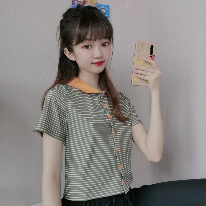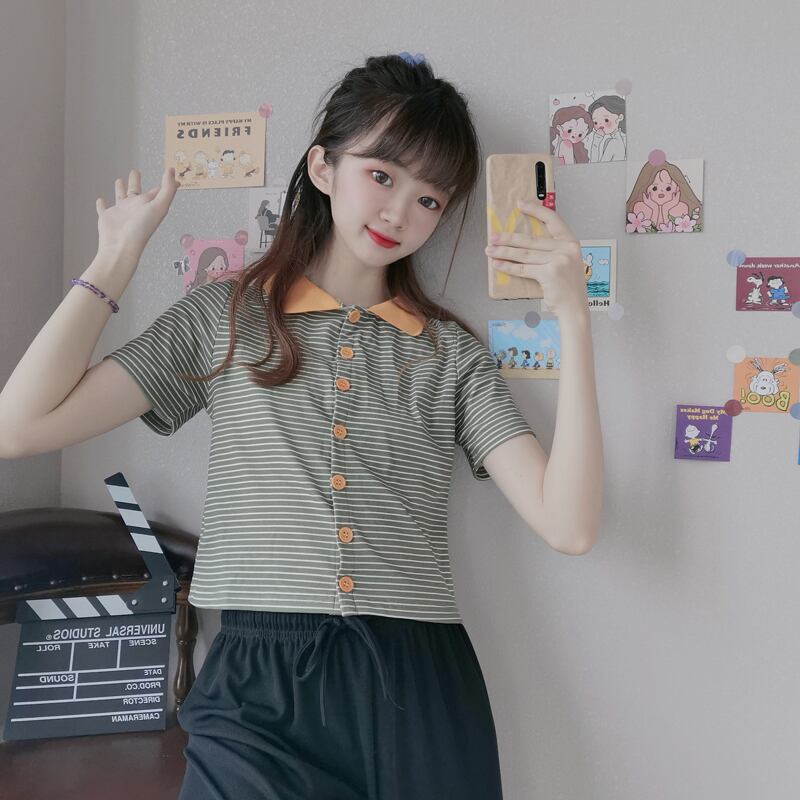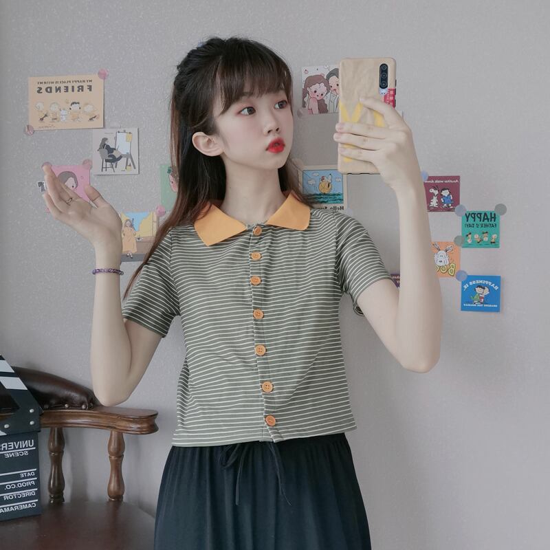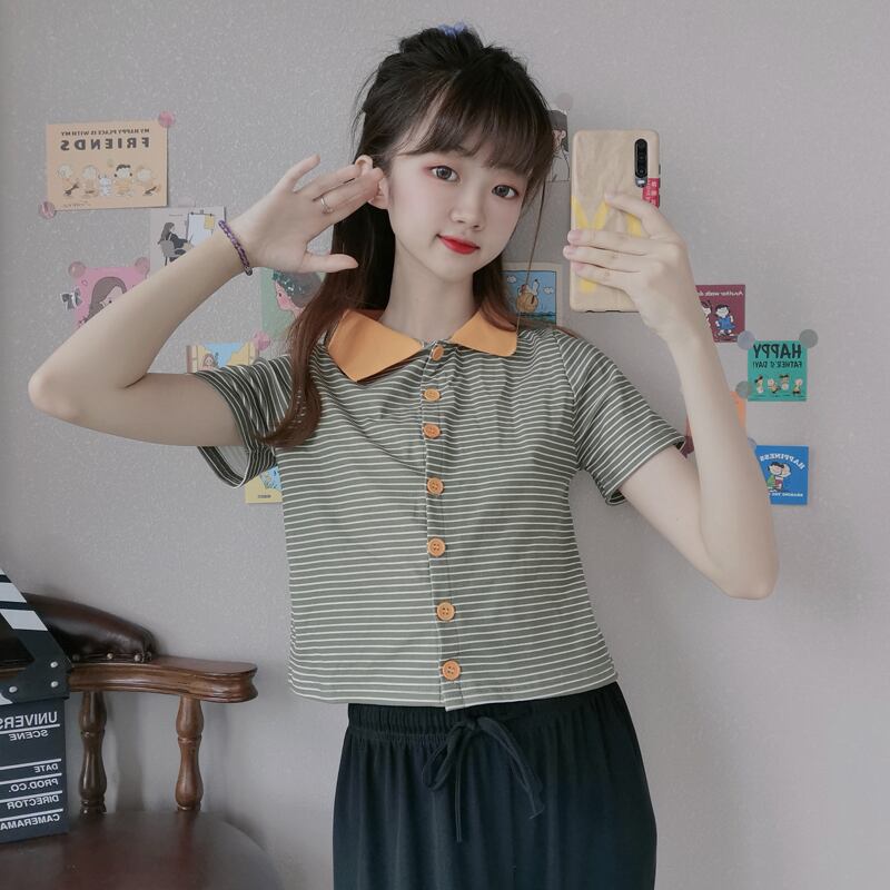 ✞ きれいめ☆ショートTシャツ シャツブラウス♥カワイイ♥ストライプ ✞ゴスロリ SM ミリ 甘ロリ クラロリ 和ロリ エレガント 黒ロリ 姫ロリ 華ロリ BB-BB8322051