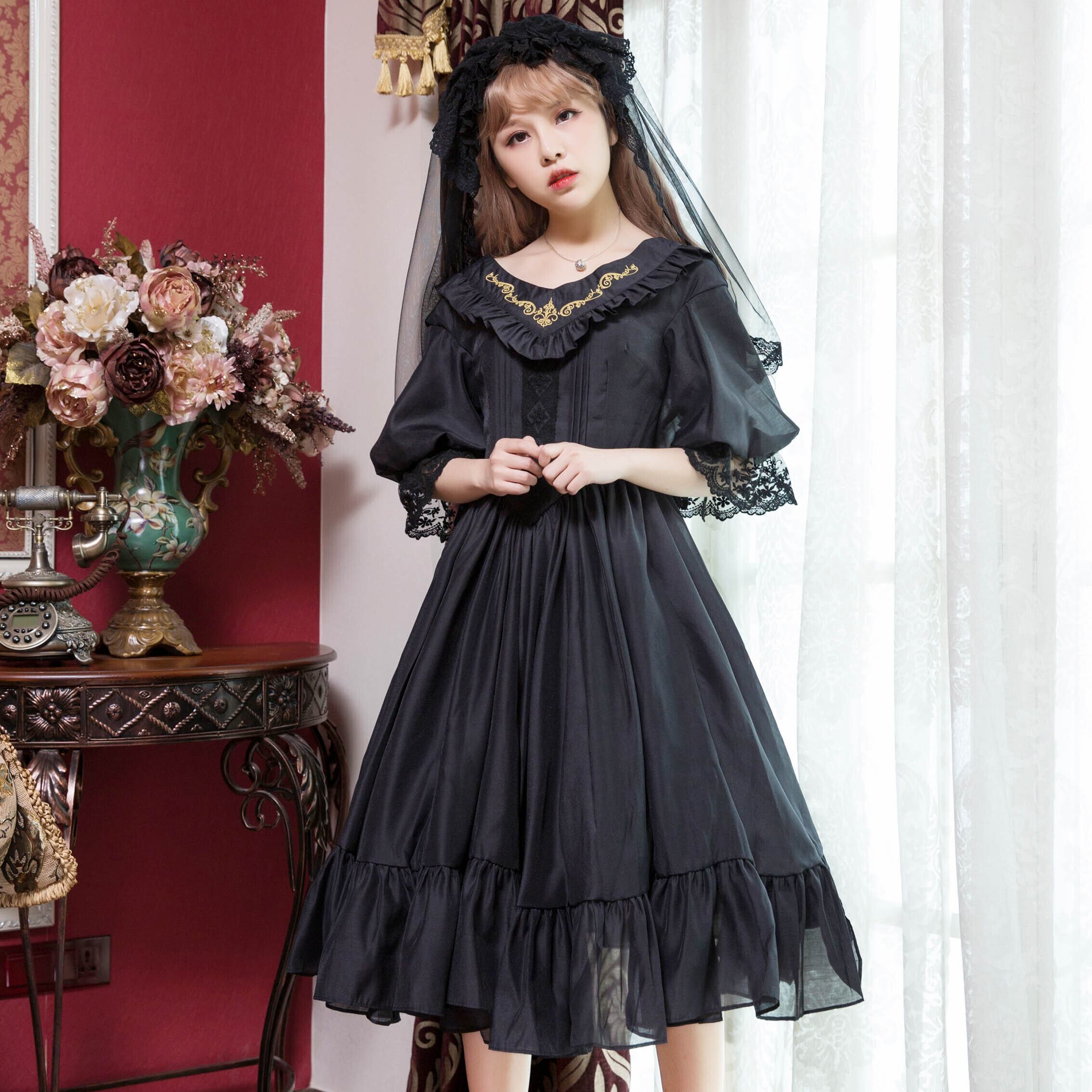 ✞ゴシックロリータレトロ刺繍レースワンピースドレスOP エレガント JSK ✞✝✞ ゴスロリ SM ミリ 甘ロリ クラロリ 和ロリ エレガント 黒ロリ 姫ロリ 華ロリ 春 夏服 秋服 冬服 CC-CC7386974