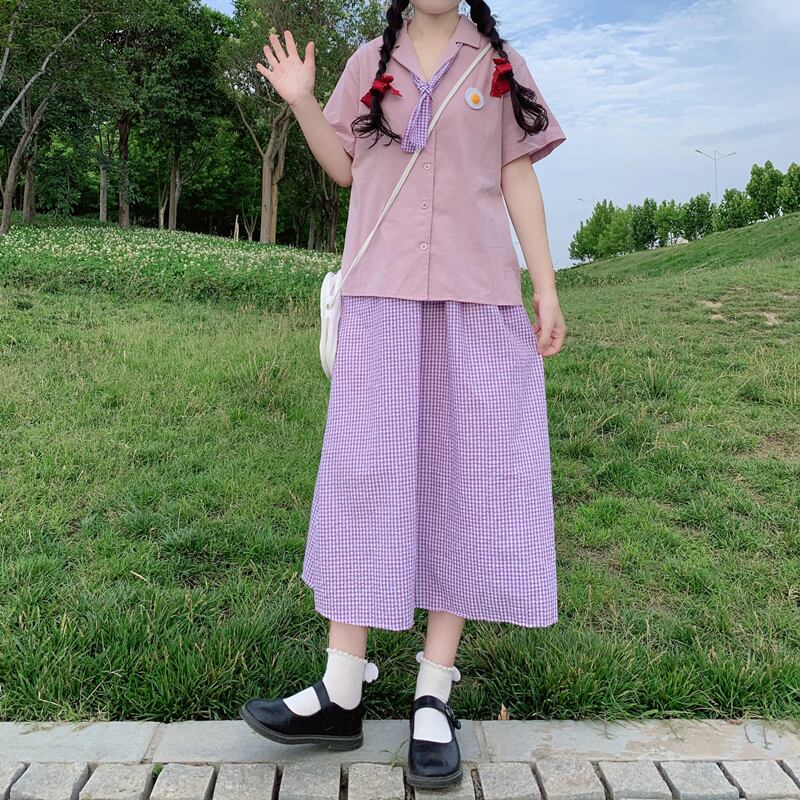 色:パープルシャツ+ネクタイ+ブローチ,パープルスカートワンピース