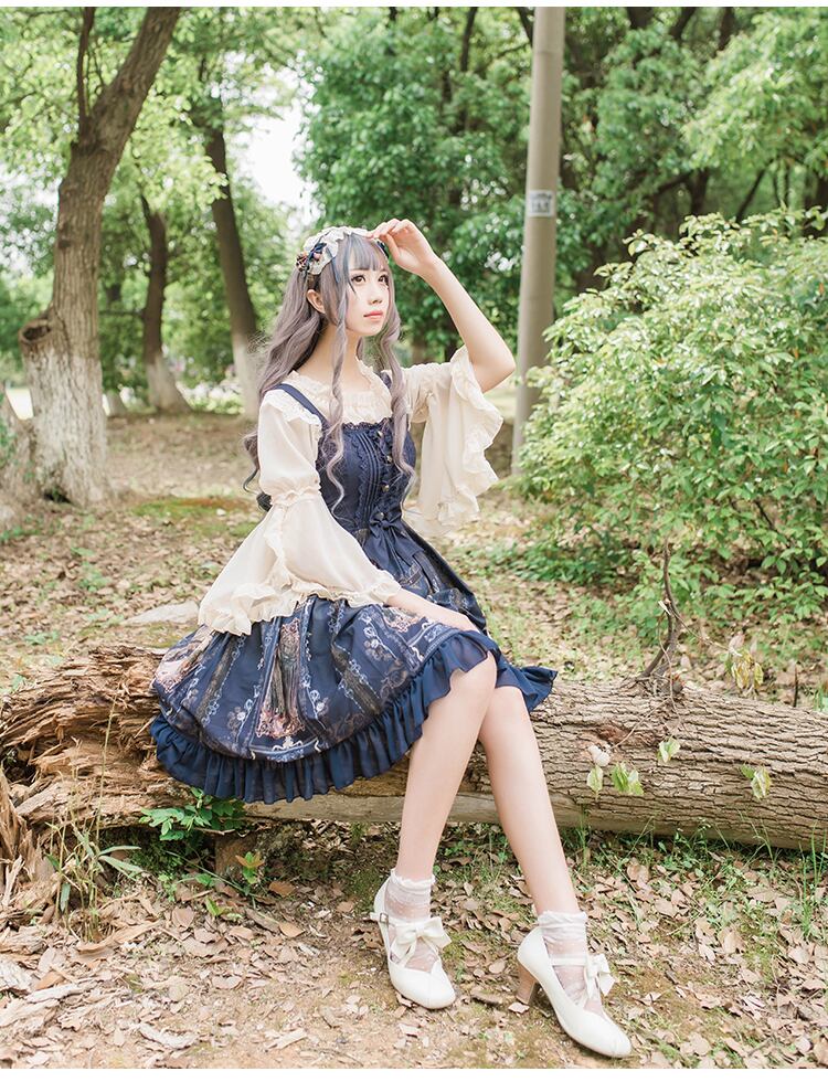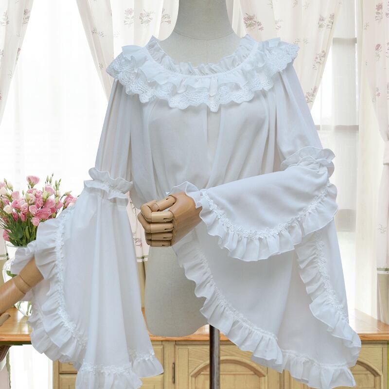 ✞✝✞ スリーブシフォンシャツブラウス 姫袖 ショートトップス ロング ✞✝✞ ゴスロリ SM ミリ 甘ロリ クラロリ 和ロリ エレガント 黒ロリ 姫ロリ 華ロリ 春 夏服 秋服 冬服 CC-CC0545422