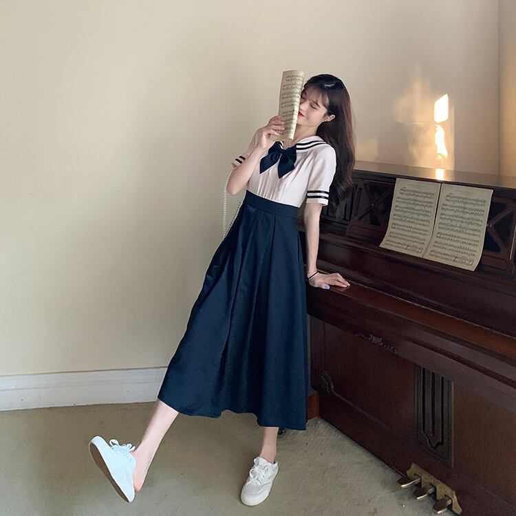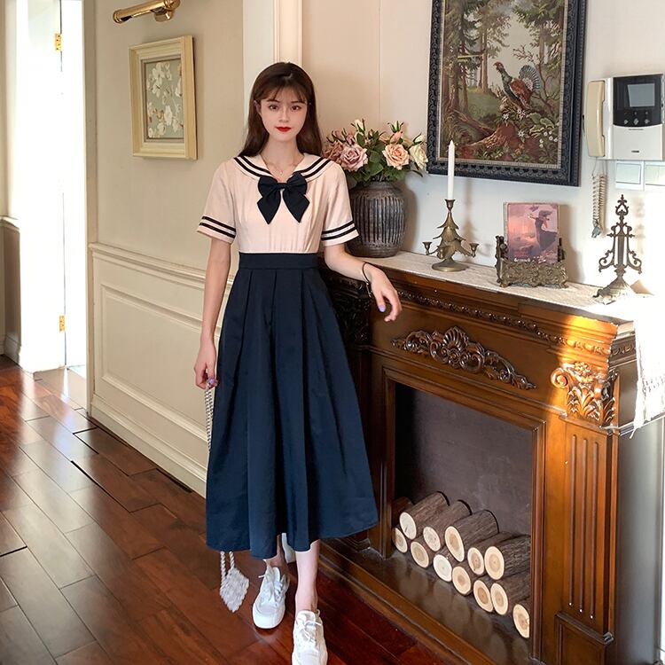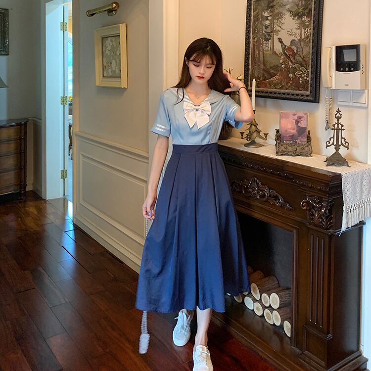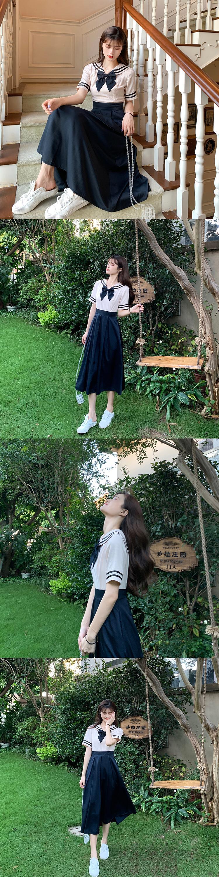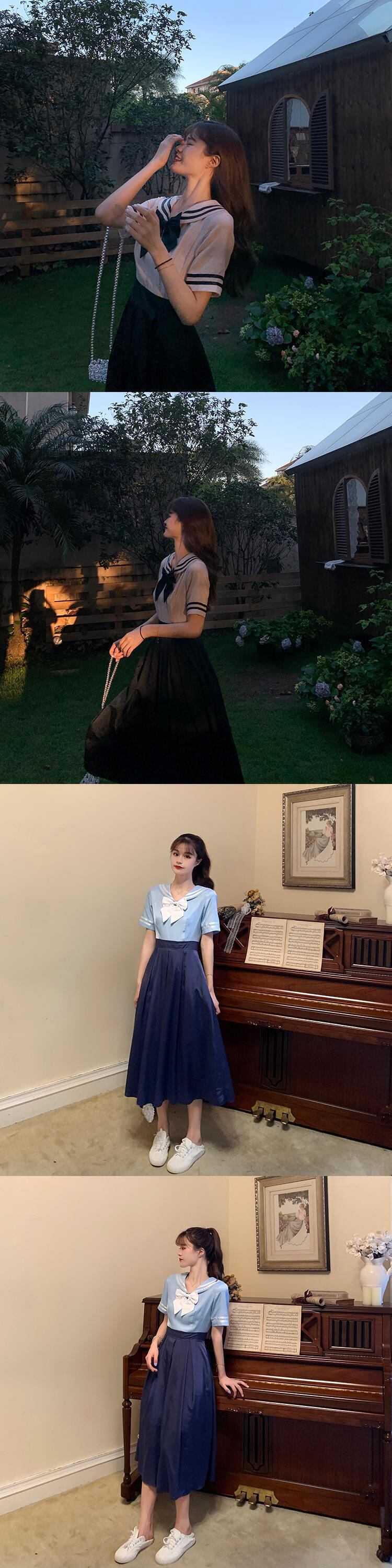 ✞ きれいめ☆ネイビー♥カワイイ♥プリーツカラー リボン スウィート ✞ゴスロリ SM ミリ 甘ロリ クラロリ 和ロリ エレガント 黒ロリ 姫ロリ 華ロリ BB-BB9014958