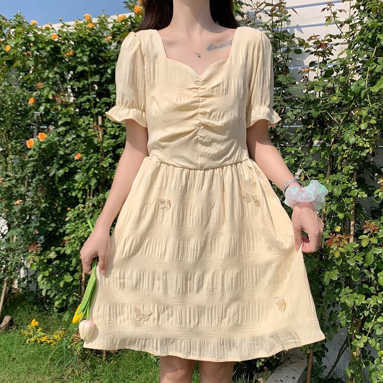 ✞ Vネックプリーツスリーブスカート Butterflyデザイン ♥カワイイ♥ショート スウィート ガーリー ✞ゴスロリ SM ミリ 甘ロリ クラロリ 和ロリ エレガント 黒ロリ 姫ロリ 華ロリ BB-BB5461399