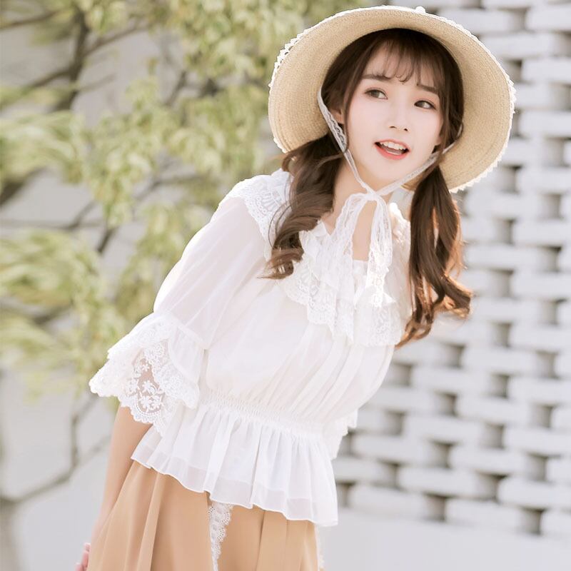 ✞✝✞ フリルシャツブラウススリーブ半袖シフォン ショート 半袖スリーブ スウィート ガーリー ✞✝✞ ゴスロリ SM ミリ 甘ロリ クラロリ 和ロリ エレガント 黒ロリ 姫ロリ 華ロリ 春 夏服 秋服 冬服 CC-CC7999478