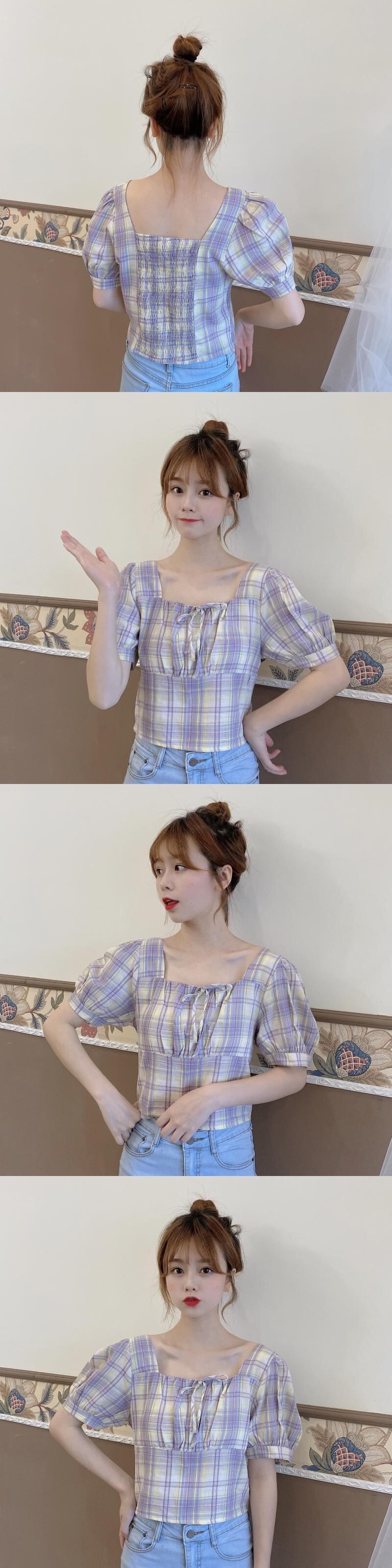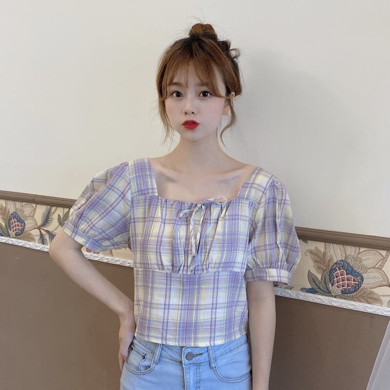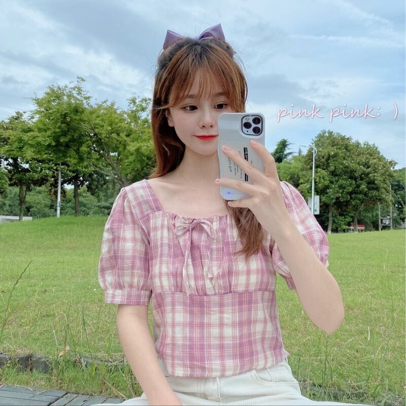 ✞ ショートシャツブラウスレースチェック柄スリムスリーブトップス スウィート スクウェア ✞ゴスロリ SM ミリ 甘ロリ クラロリ 和ロリ エレガント 黒ロリ 姫ロリ 華ロリ BB-BB5996240