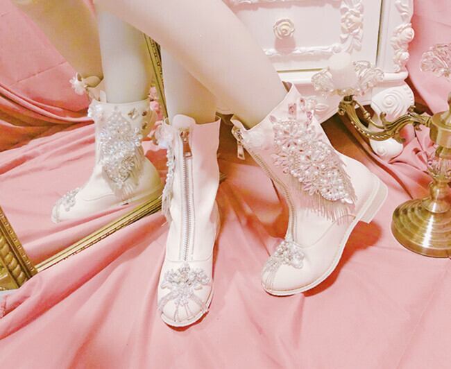 ✞✝✞ ジッパーブーツ♥カワイイ♥ウィンター ピンク 靴 シューズ 冬物 ✞✝✞ゴスロリ SM ミリ 甘ロリ クラロリ 和ロリ エレガント 黒ロリ 姫ロリ 華ロリ DD-DD3984582