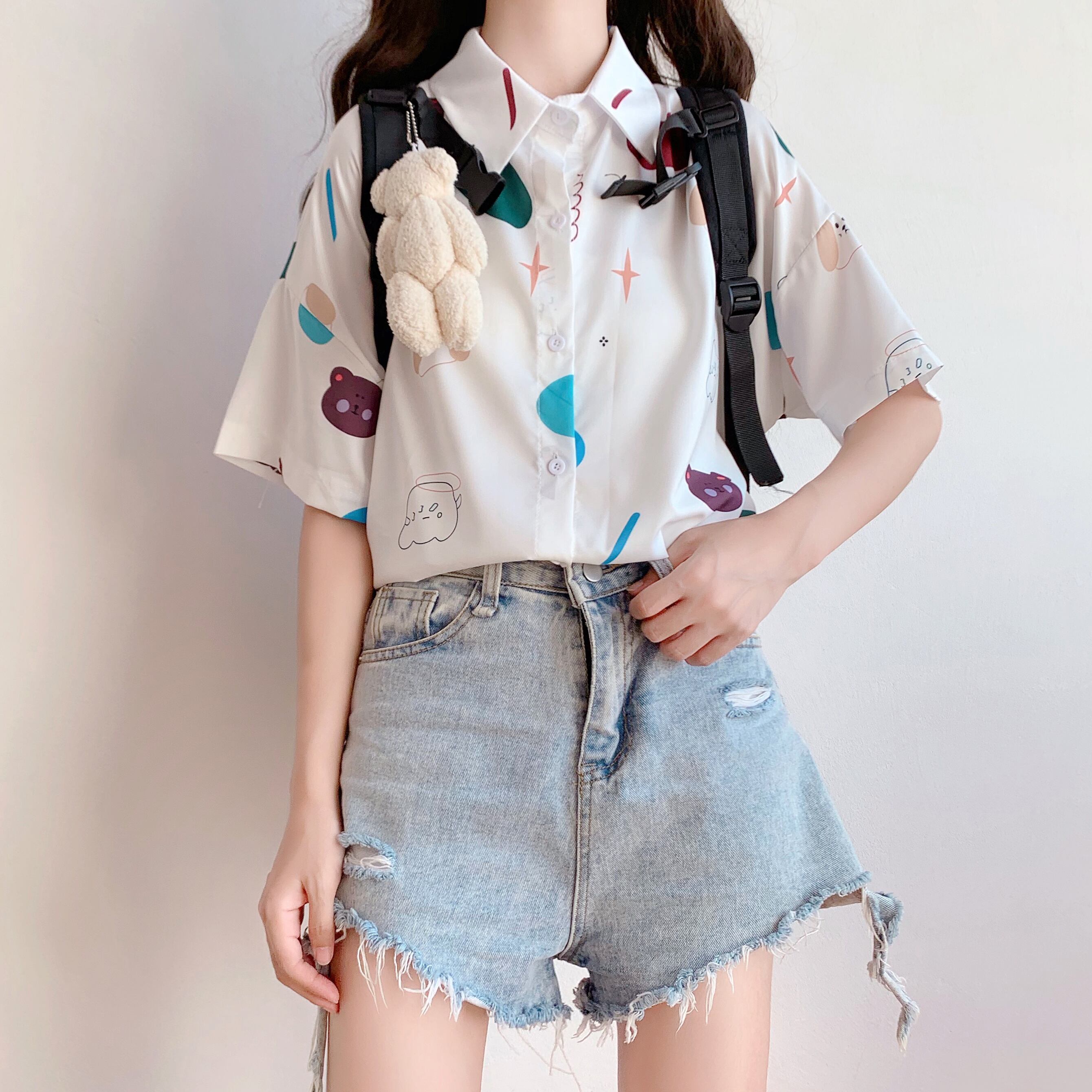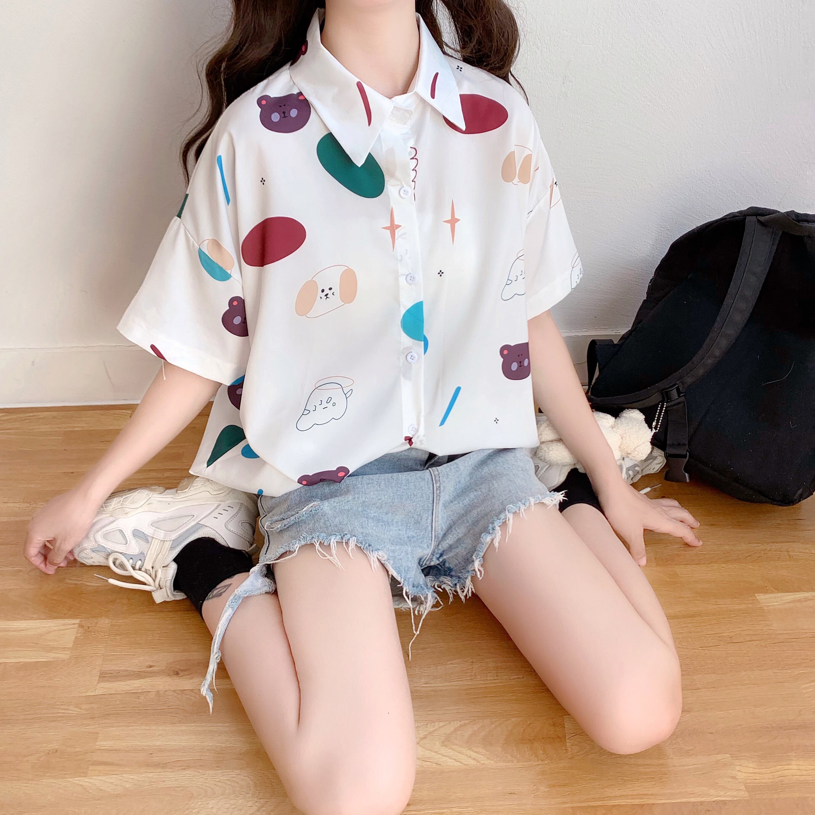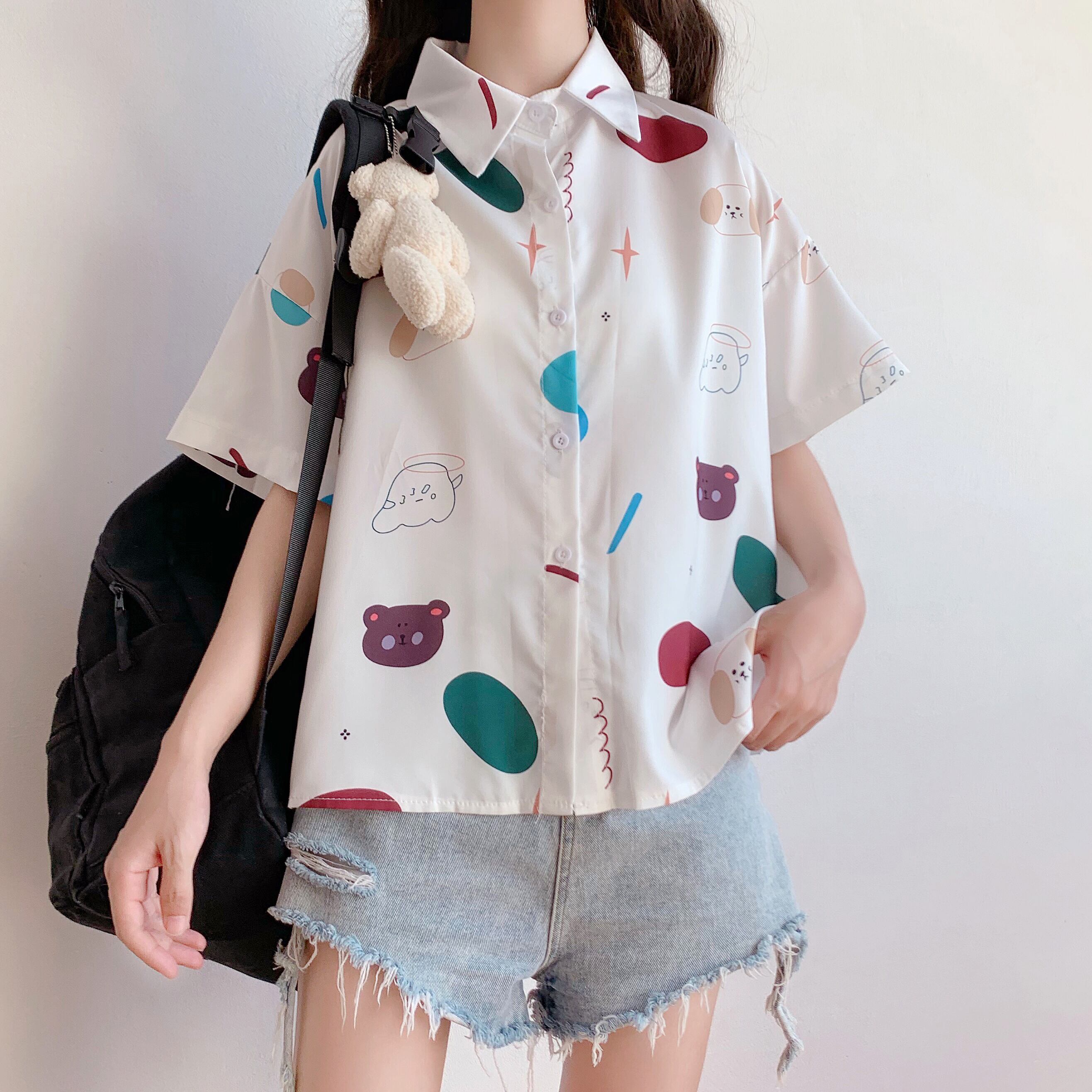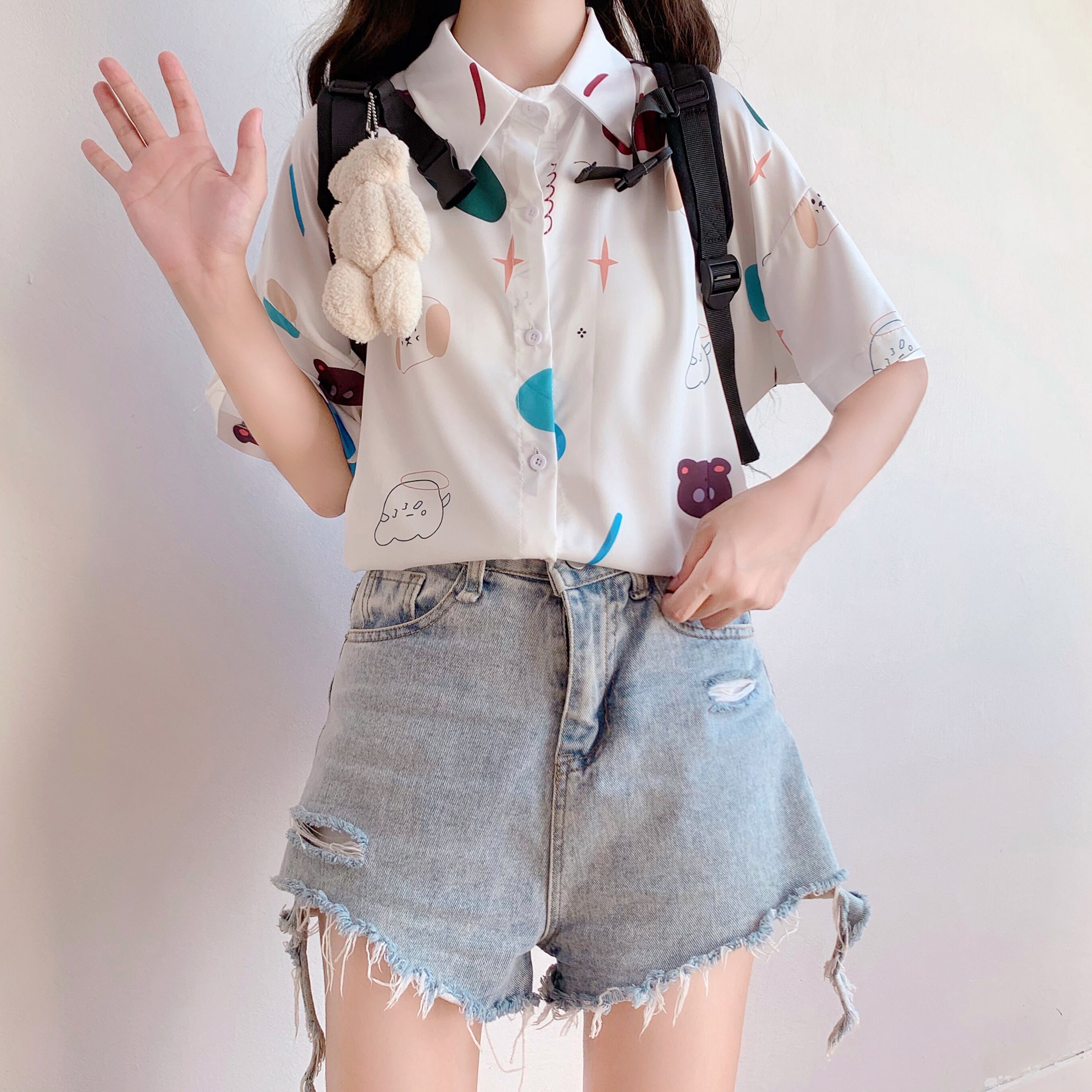 ✞ 半袖スリーブプリント柄シャツブラウス ショート スウィート ✞ゴスロリ SM ミリ 甘ロリ クラロリ 和ロリ エレガント 黒ロリ 姫ロリ 華ロリ BB-BB6491742