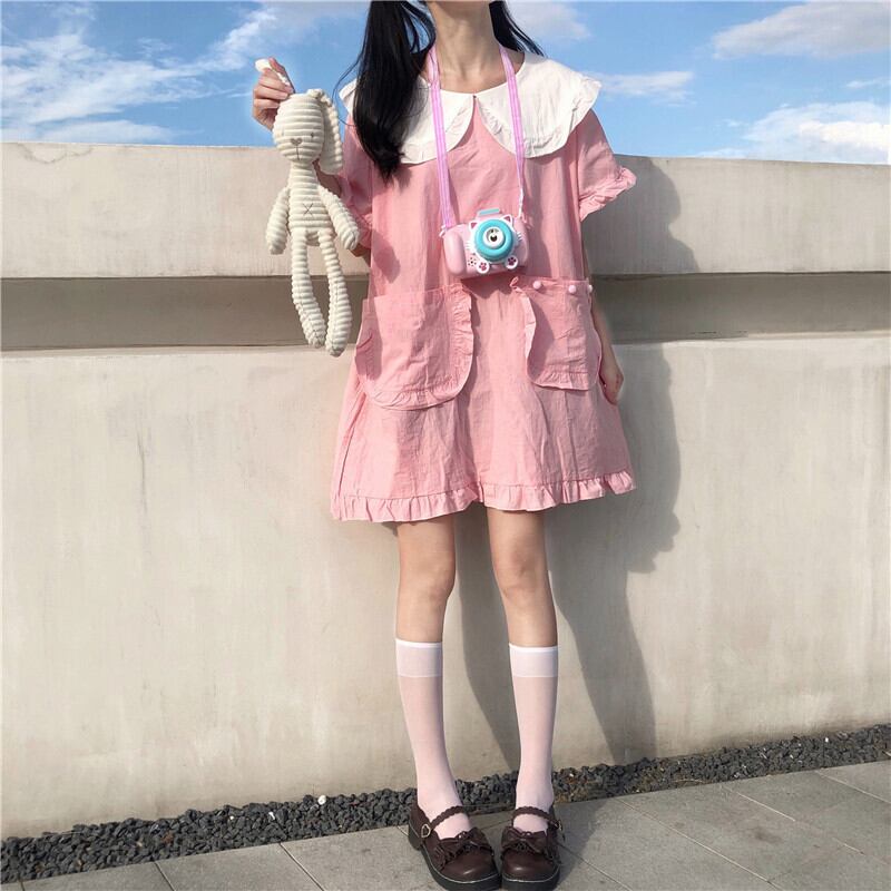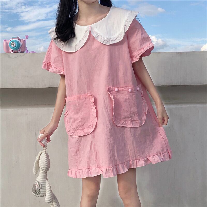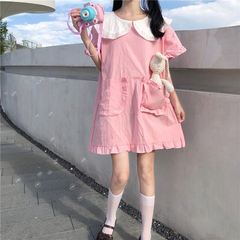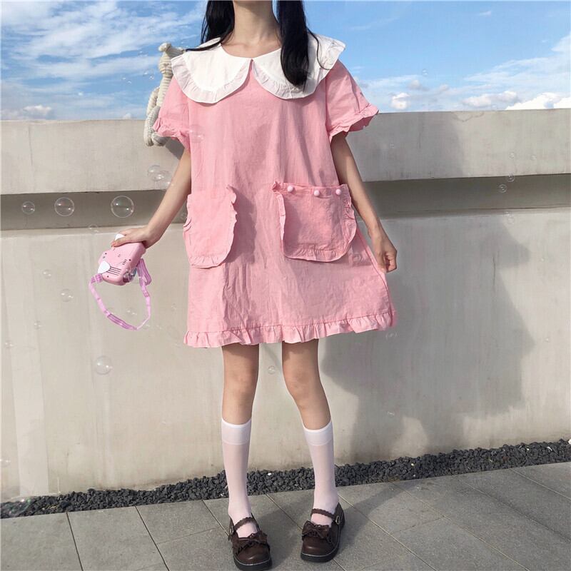 ✞ ピンク丸襟ゆったりワンピース スカート ☆スウィート ✞ゴスロリ SM ミリ 甘ロリ クラロリ 和ロリ エレガント 黒ロリ 姫ロリ 華ロリ BB-BB4262884