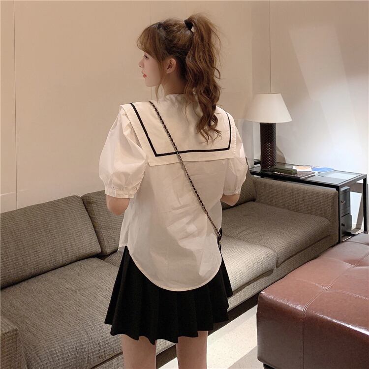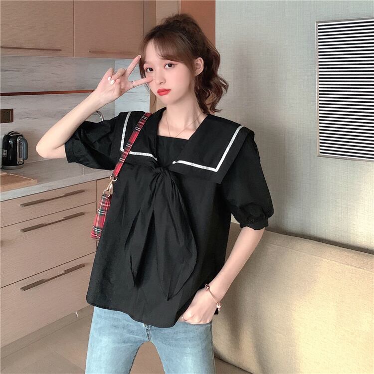 ✞ シャツブラウスネイビーレース♥カワイイ♥ ランタンスリーブ スウィート ✞ゴスロリ SM ミリ 甘ロリ クラロリ 和ロリ エレガント 黒ロリ 姫ロリ 華ロリ BB-BB0624562