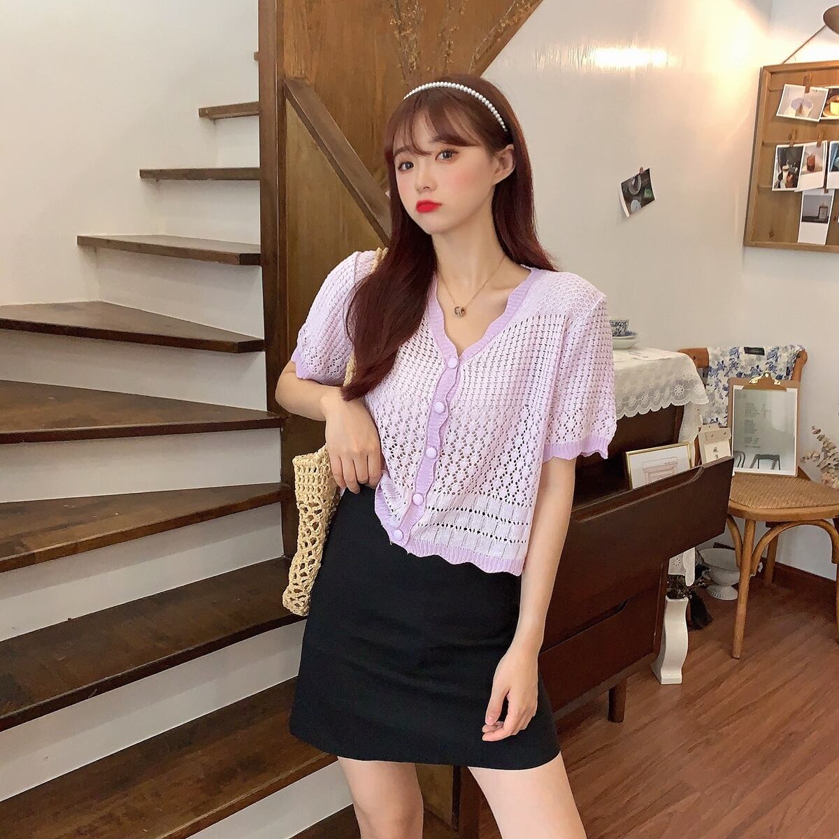 ✞ ♥カワイイ♥ショートTシャツ Vネックニットカーディガントップス シルク パープル ✞ゴスロリ SM ミリ 甘ロリ クラロリ 和ロリ エレガント 黒ロリ 姫ロリ 華ロリ BB-BB8947039