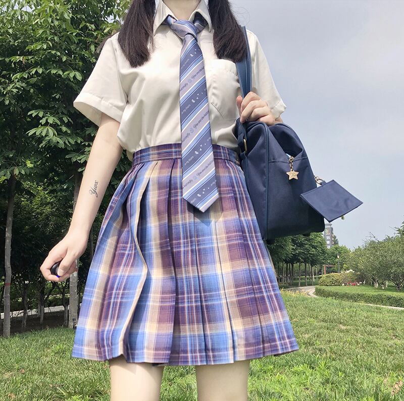 色:チェックスカート,ネクタイ