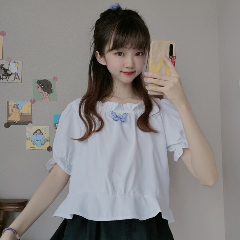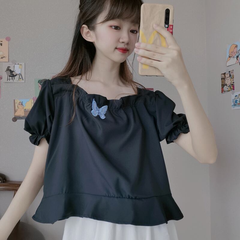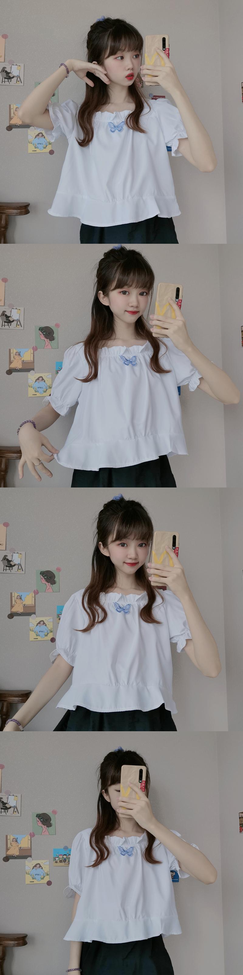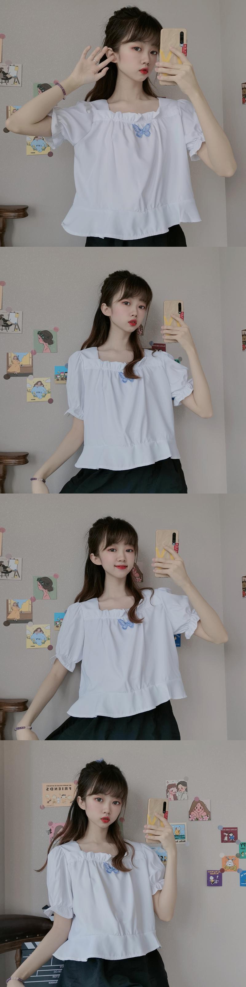 ✞ きれいめ☆レースシャツブラウスButterflyデザイン 刺繍ショート スウィート スクウェア ✞ゴスロリ SM ミリ 甘ロリ クラロリ 和ロリ エレガント 黒ロリ 姫ロリ 華ロリ BB-BB4692990