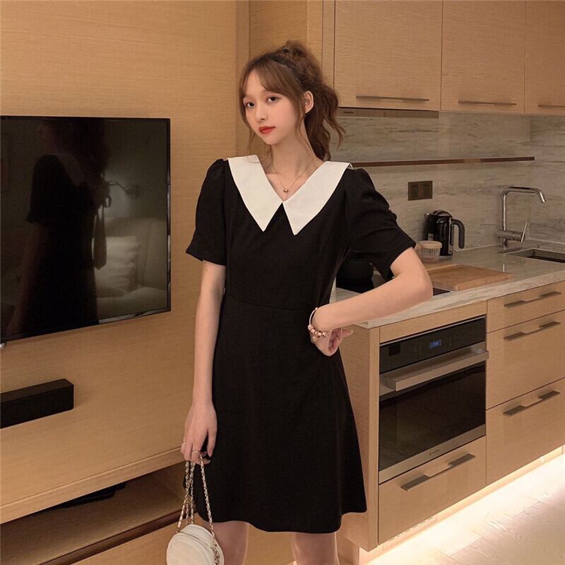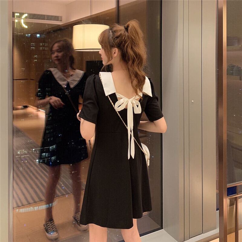 ✞ 背中のレースリボンがかわいい❤バックレス襟付きワンピース スカート カラー レトロ ✞ゴスロリ SM ミリ 甘ロリ クラロリ 和ロリ エレガント 黒ロリ 姫ロリ 華ロリ BB-BB9459117