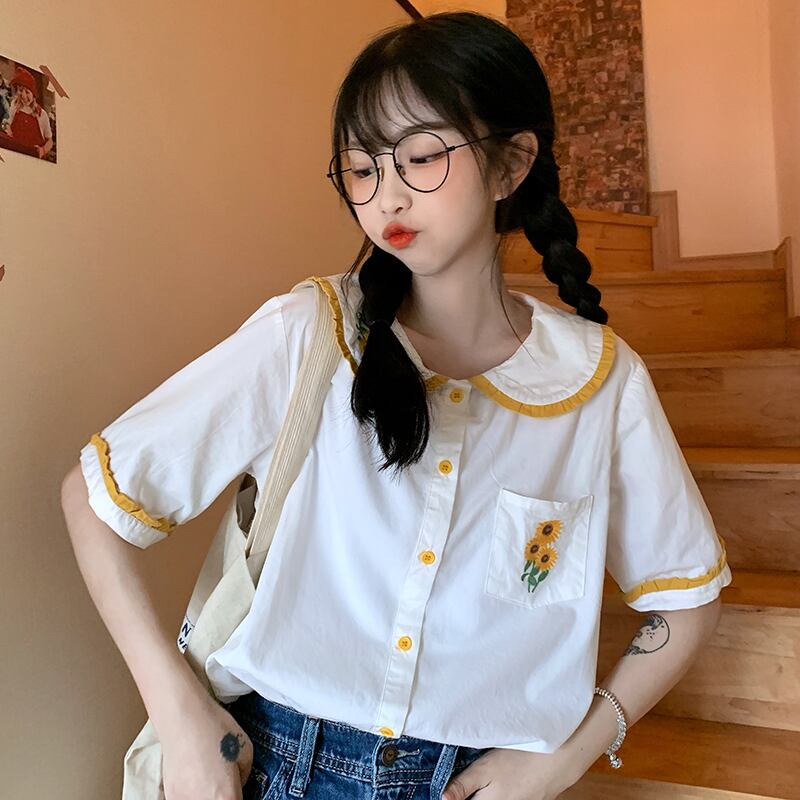 ✞ トップス 半袖スリーブ刺繍シャツブラウス 丸襟 ショート スウィート フラワーデザイン ✞ゴスロリ SM ミリ 甘ロリ クラロリ 和ロリ エレガント 黒ロリ 姫ロリ 華ロリ BB-BB1648995