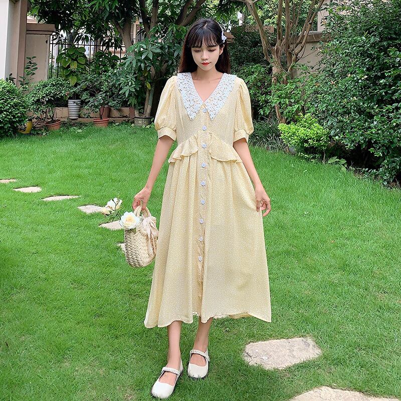 ✞ Vネック襟元レーススリーブシフォンワンピース♥カワイイ♥ スウィート ステッチ ✞ゴスロリ SM ミリ 甘ロリ クラロリ 和ロリ エレガント 黒ロリ 姫ロリ 華ロリ BB-BB7213151