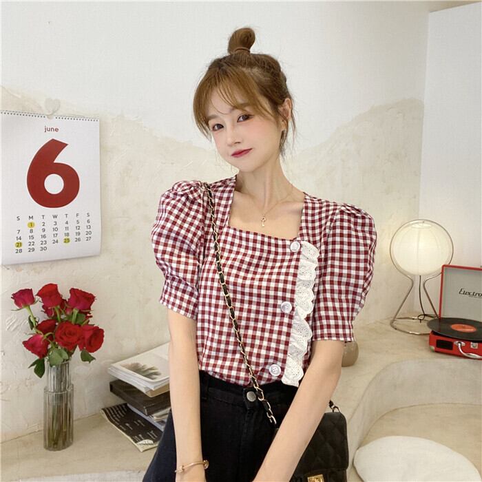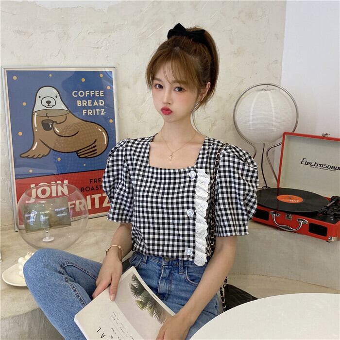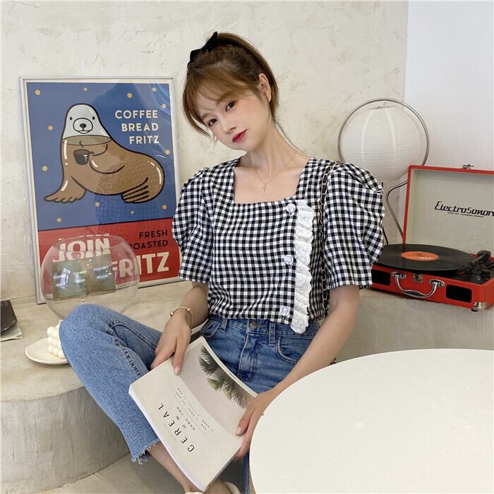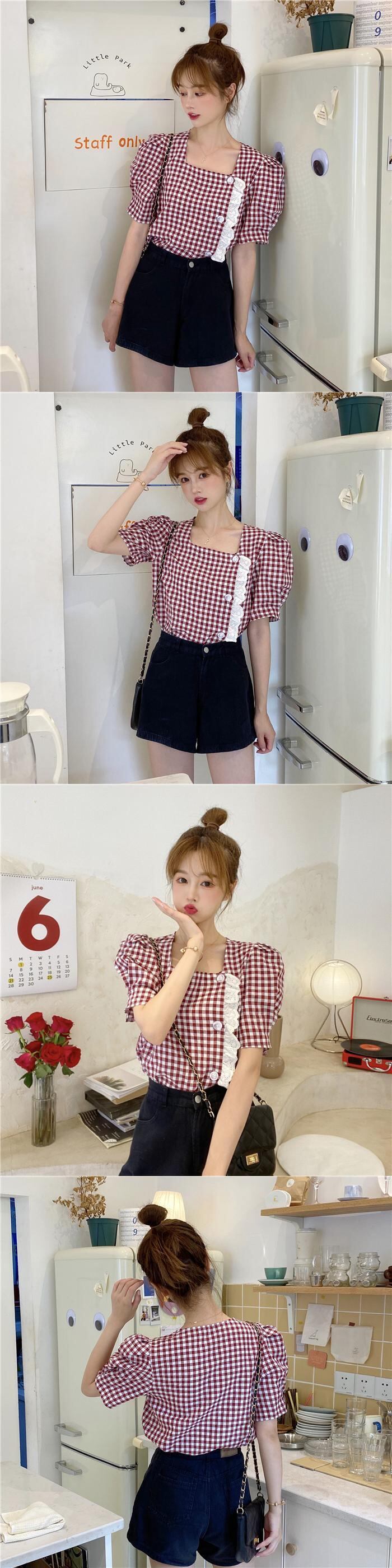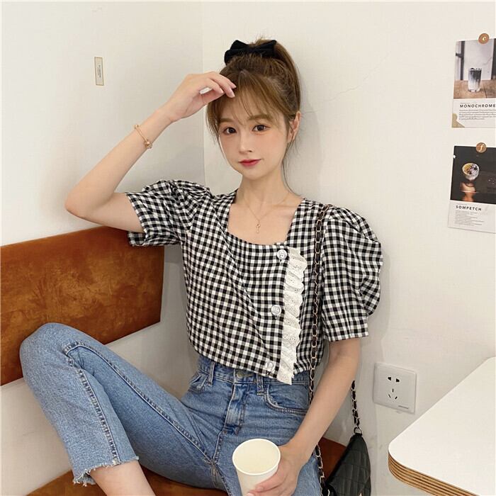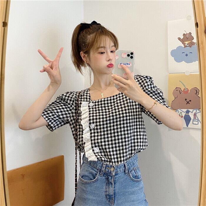 ✞ スタンダードチェック柄シャツブラウスレース♥カワイイ♥ジャケット レトロ スウィート スクウェア ✞ゴスロリ SM ミリ 甘ロリ クラロリ 和ロリ エレガント 黒ロリ 姫ロリ 華ロリ BB-BB7502581