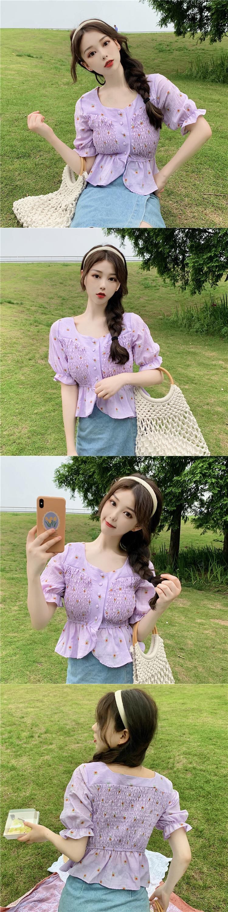 色:ホワイトフローラル,紫の壊れた花
