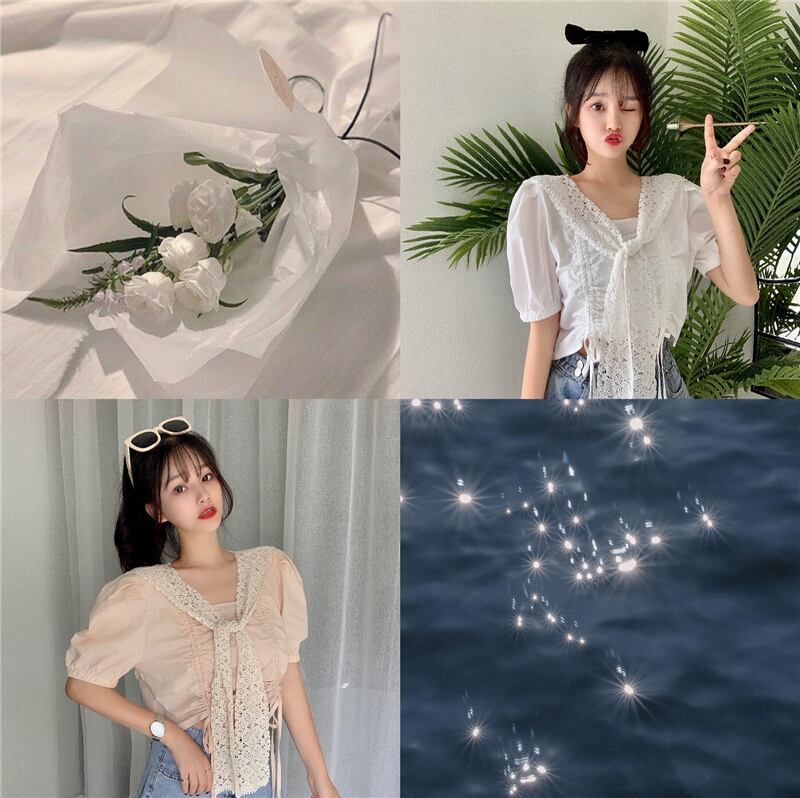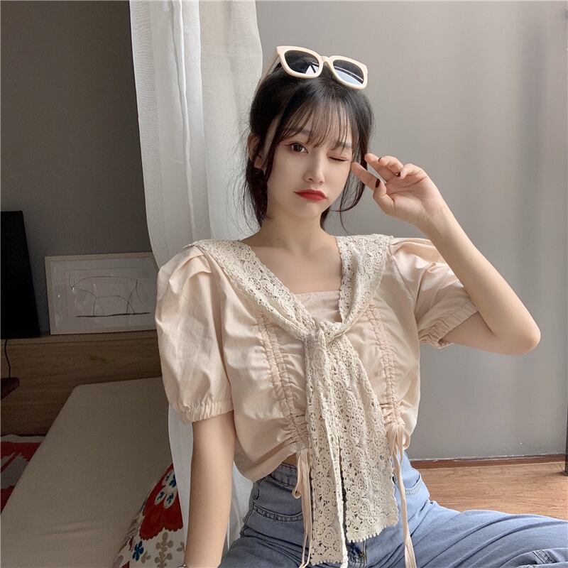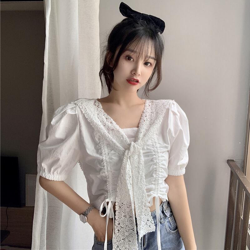 ✞ 花柄レーススリーブギャザーショートシャツブラウス スウィート フラワーデザイン スクウェア ✞ゴスロリ SM ミリ 甘ロリ クラロリ 和ロリ エレガント 黒ロリ 姫ロリ 華ロリ BB-BB6691046