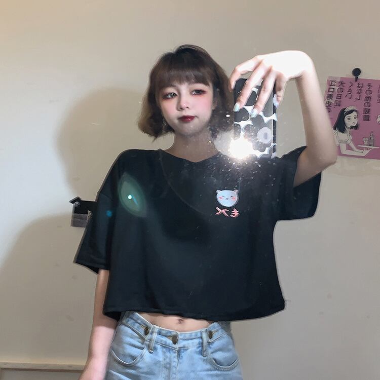 ✞ Tシャツ 刺繍ショートトップス ガーリー ✞ゴスロリ SM ミリ 甘ロリ クラロリ 和ロリ エレガント 黒ロリ 姫ロリ 華ロリ BB-BB0479231