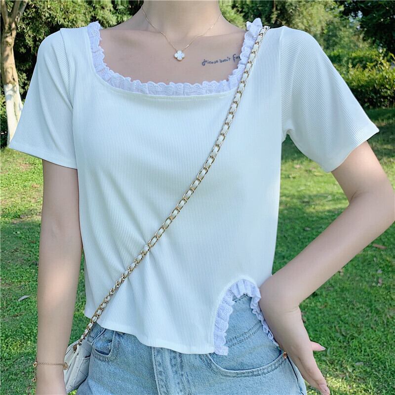 ✞ ニットセーター レース半袖スリーブTシャツ ショート スウィート ステッチ ✞ゴスロリ SM ミリ 甘ロリ クラロリ 和ロリ エレガント 黒ロリ 姫ロリ 華ロリ BB-BB7905746